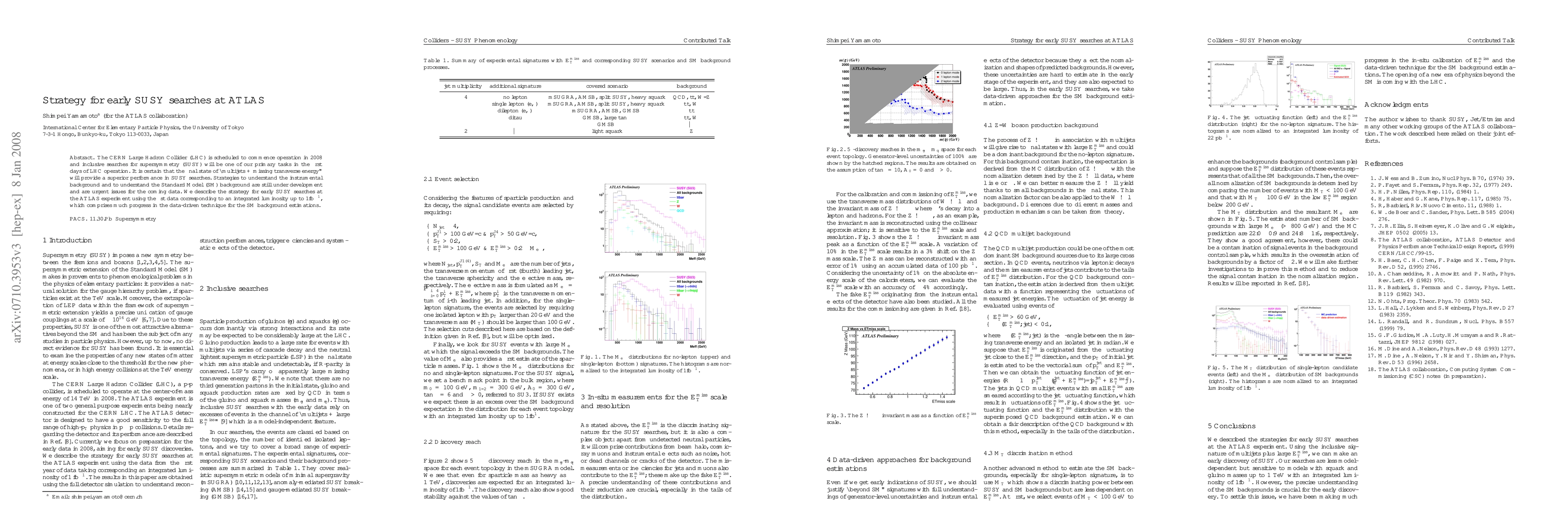 The CERN Large Hadron Collider (LHC) is scheduled to commence operation in 2008 and inclusive searches for supersymmetry (SUSY) will be one of our primary tasks in the first days of LHC operation. It is certain that the final state of multijets + missing transverse energy will provide a superior performance in SUSY searches. Strategies to understand the instrumental background and to understand the Standard Model (SM) background are still under development and are urgent issues for the coming data. We describe the strategy for early SUSY searches at the ATLAS experiment using the fist data corresponding to an integrated luminosity up to 1fb^-1, which comprises much progress in the data-driven technique for the SM background estimations.