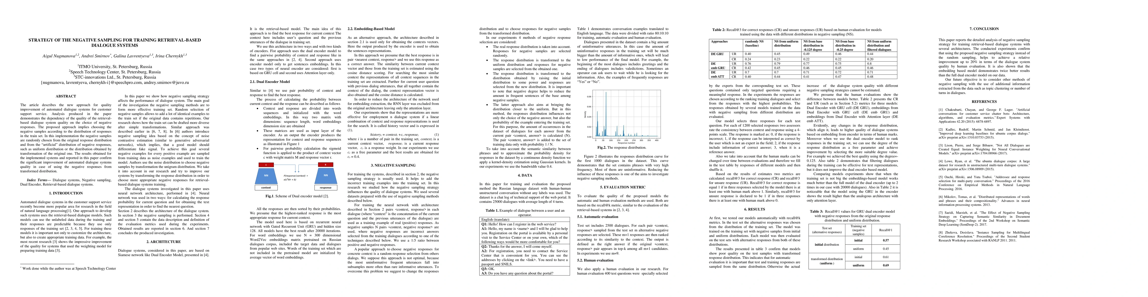 The article describes the new approach for quality improvement of automated dialogue systems for customer support service. Analysis produced in the paper demonstrates the dependency of the quality of the retrieval-based dialogue system quality on the choice of negative responses. The proposed approach implies choosing the negative samples according to the distribution of responses in the train set. In this implementation the negative samples are randomly chosen from the original response distribution and from the "artificial" distribution of negative responses, such as uniform distribution or the distribution obtained by transformation of the original one. The results obtained for the implemented systems and reported in this paper confirm the significant improvement of automated dialogue systems quality in case of using the negative responses from transformed distribution.