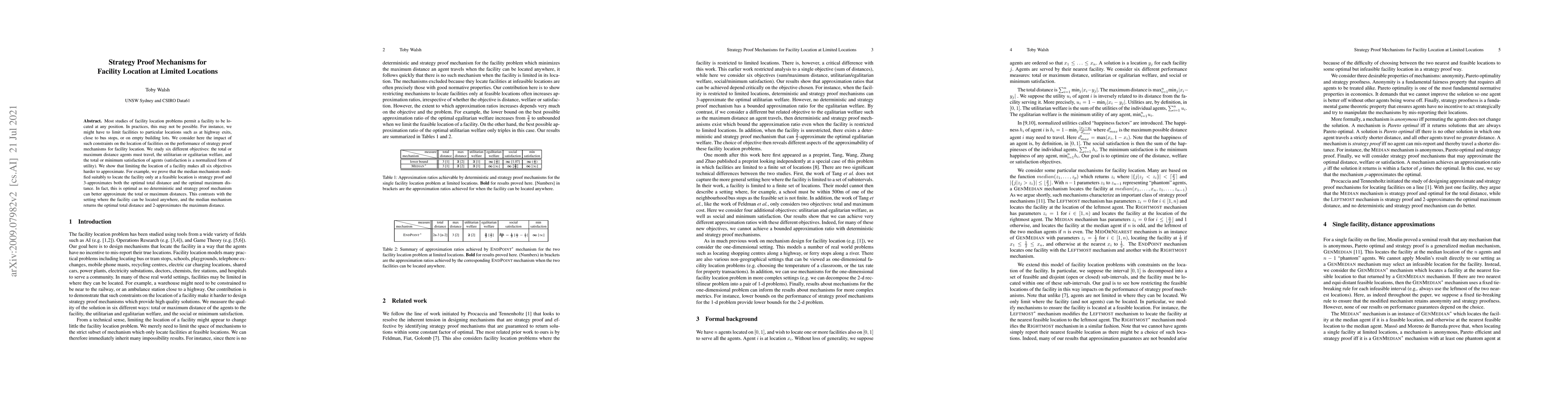 This paper investigates strategy-proof mechanisms for facility location when facilities can only be placed at specific, limited locations. It demonstrates that such constraints complicate the approximation of objectives like total distance, maximum distance, and utilitarian and egalitarian welfare.