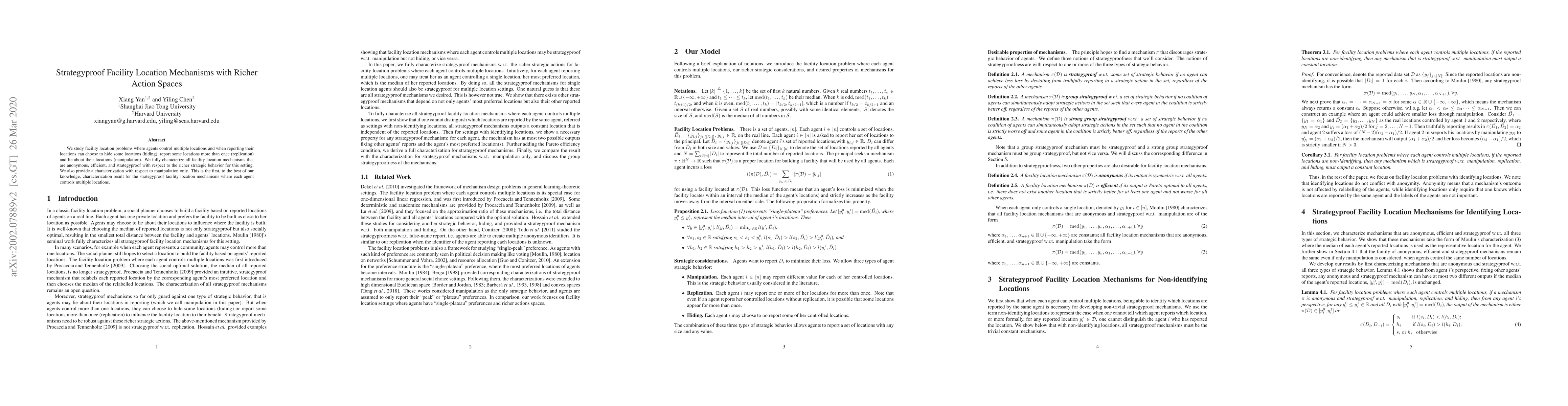 This paper characterizes strategyproof facility location mechanisms where agents can hide, replicate, or manipulate their controlled locations. It provides a comprehensive analysis of anonymous, efficient, and strategyproof mechanisms for this setting, marking the first such characterization for agents managing multiple locations.