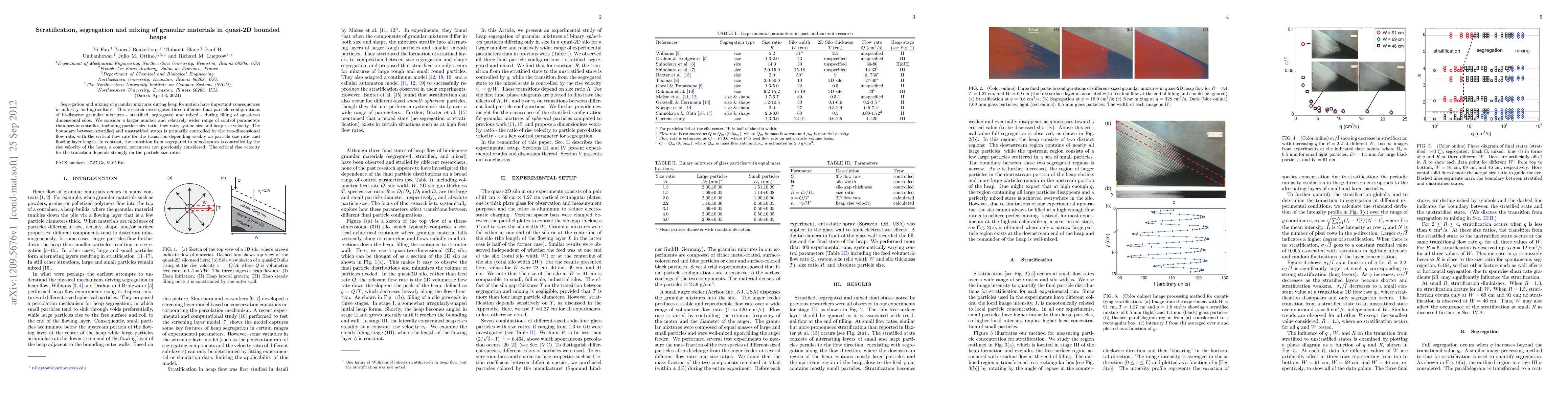 This study examines the segregation and mixing of bi-disperse granular mixtures in quasi-2D silos, identifying three final configurations: stratified, segregated, and mixed. The boundary between stratified and unstratified states is mainly influenced by the flow rate, while the transition from segregated to mixed states is primarily controlled by heap rise velocity, with strong dependence on particle size ratio.