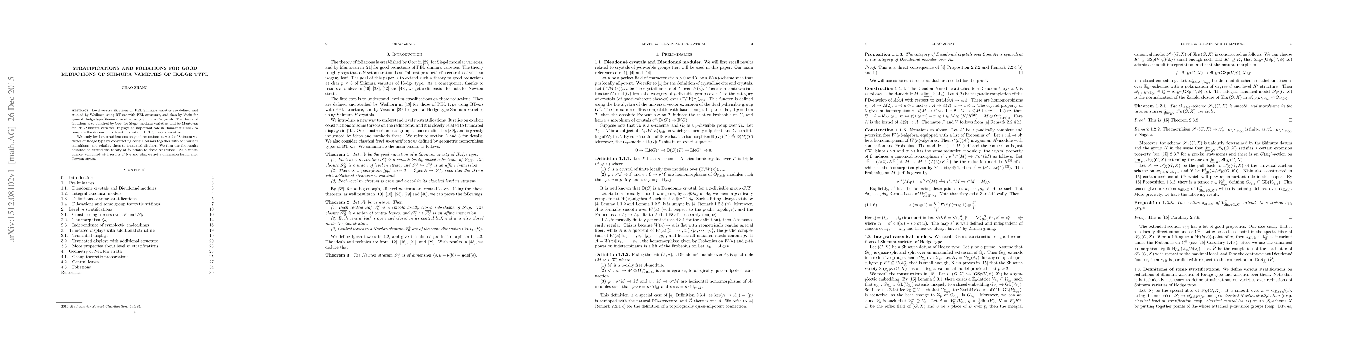 This paper constructs level $m$ stratifications and extends the theory of foliations to good reductions of Shimura varieties of Hodge type at primes $p > 2$. It achieves this by relating these stratifications to truncated displays and equivariant morphisms, leading to a dimension formula for Newton strata.