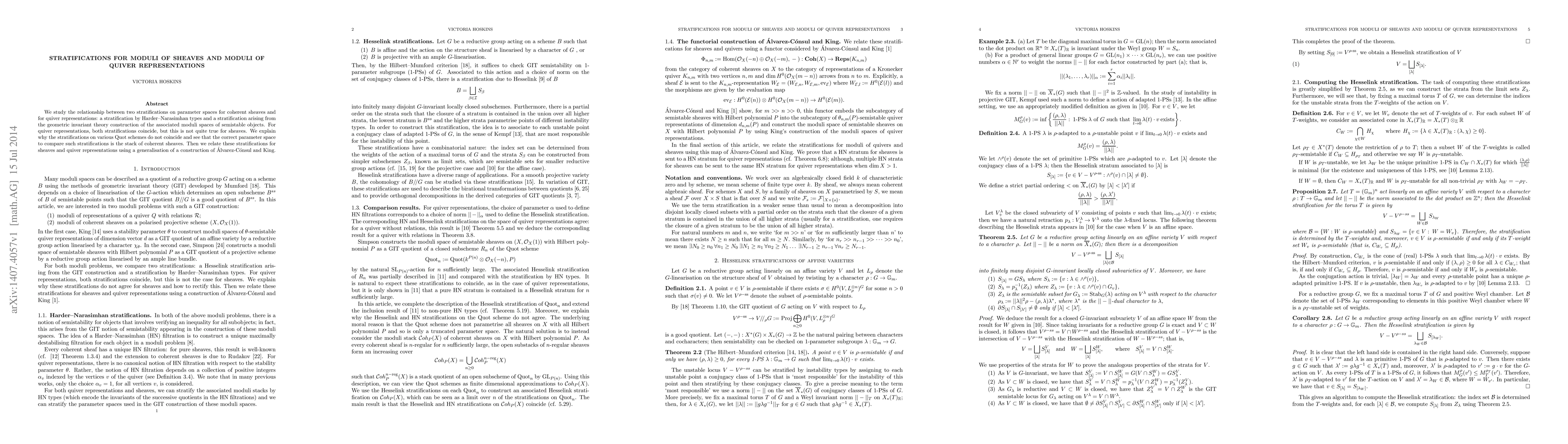 This paper investigates the connection between two stratifications on moduli spaces: one by Harder-Narasimhan types for coherent sheaves and another from geometric invariant theory for quiver representations. While the stratifications coincide for quiver representations, they differ for sheaves, with the appropriate comparison being made in the stack of coherent sheaves using a generalization of a construction by Álvarez-Consul and King.