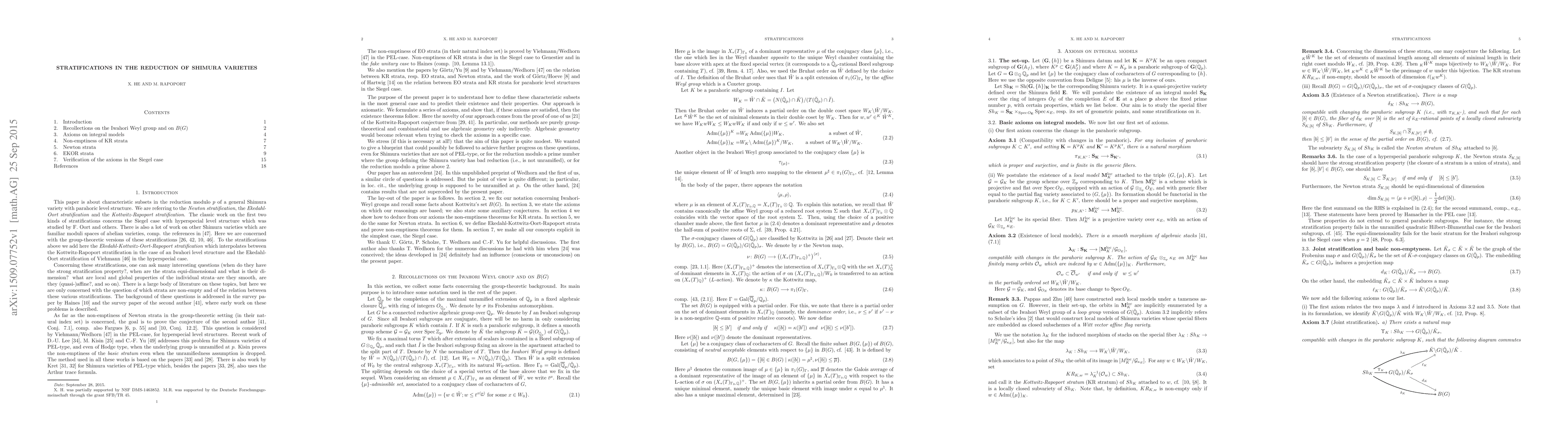 This paper studies four stratifications in the reduction modulo $p$ of Shimura varieties, proving that a set of axioms implies non-emptiness and closure relations among them, and confirms the axioms hold in the Siegel case.