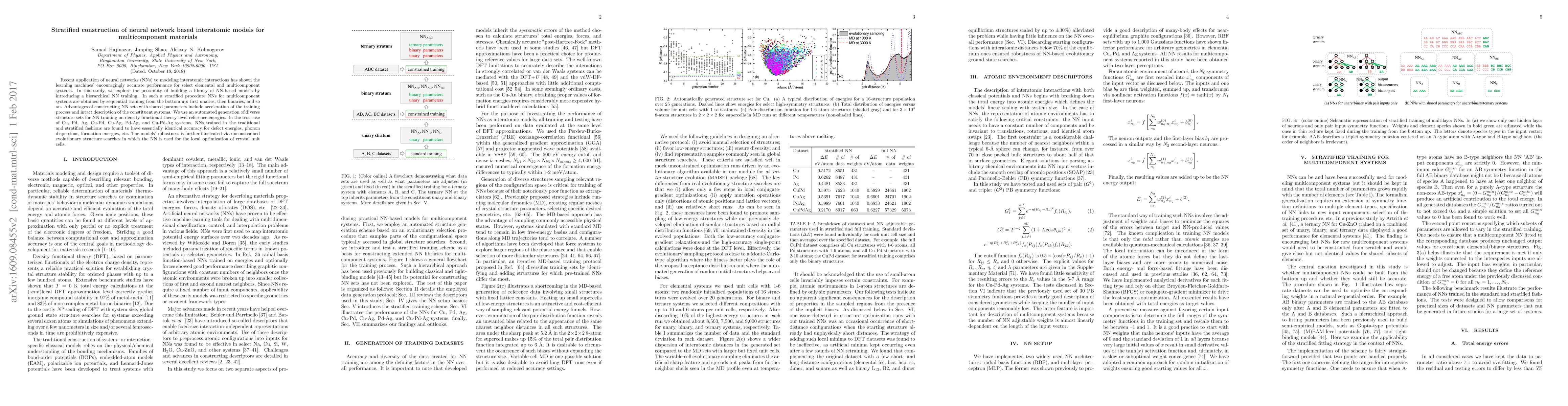 This paper proposes a stratified construction method for neural network-based interatomic models, training networks sequentially from unaries to multicomponent systems, which accelerates training and maintains accuracy. The method's effectiveness is demonstrated through its application to Cu, Pd, Ag, and their alloy systems, showing comparable accuracy to traditional methods.