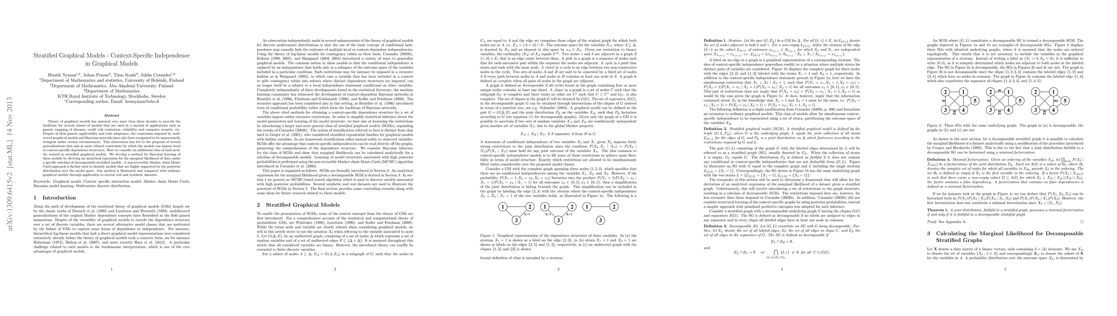 This paper introduces stratified graphical models to relax constraints in traditional graphical models, proposing a method for Bayesian learning and model selection using Markov chain Monte Carlo. It demonstrates the effectiveness of these models through real and synthetic datasets.