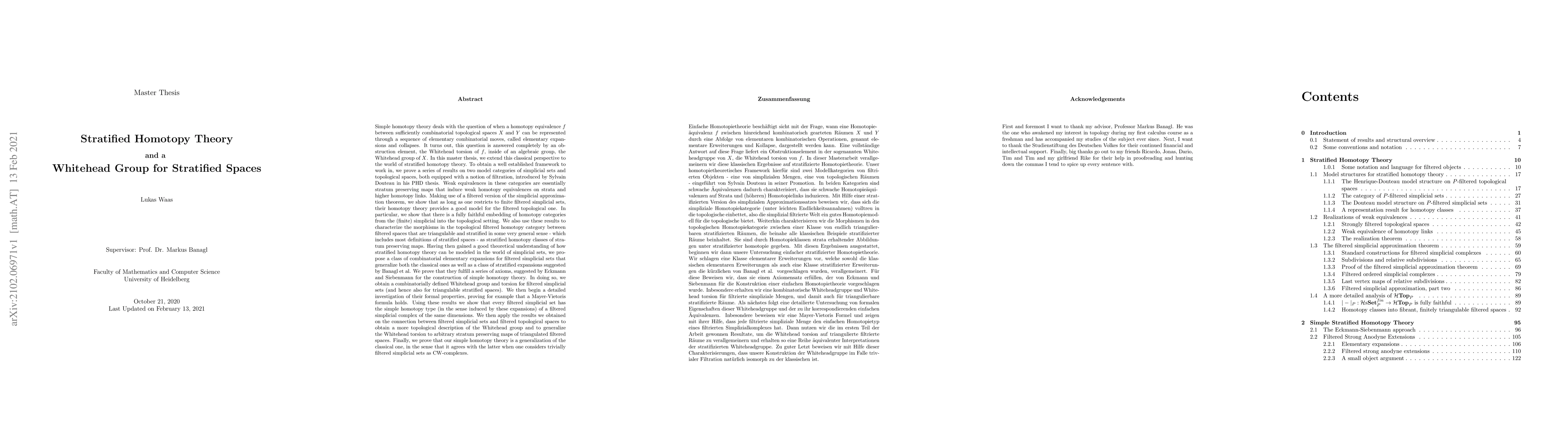 This research extends classical simple homotopy theory to stratified homotopy theory, establishing a framework through model categories of filtered simplicial sets and topological spaces. It introduces a combinatorially defined Whitehead group and torsion for filtered simplicial sets, proving a Mayer-Vietoris formula and generalizing Whitehead torsion to stratified maps, all while showing that this approach generalizes classical simple homotopy theory.