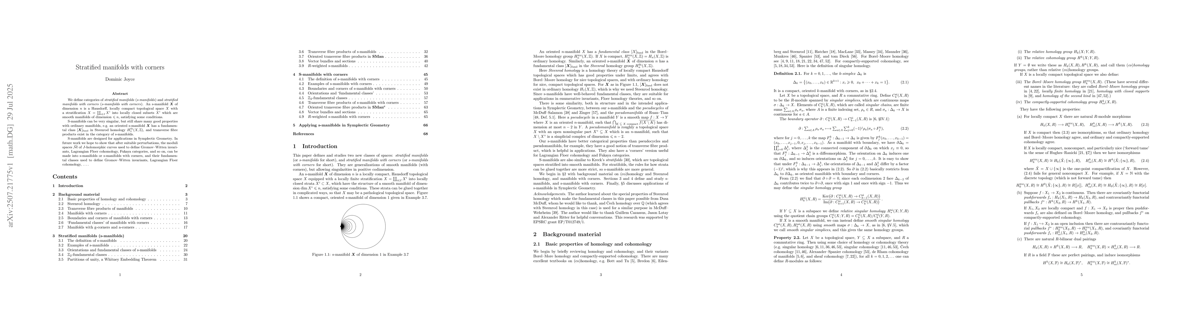 The paper introduces and formalizes the concepts of stratified manifolds and s-manifolds with corners, extending the notion of manifolds to include singularities while preserving essential properties.