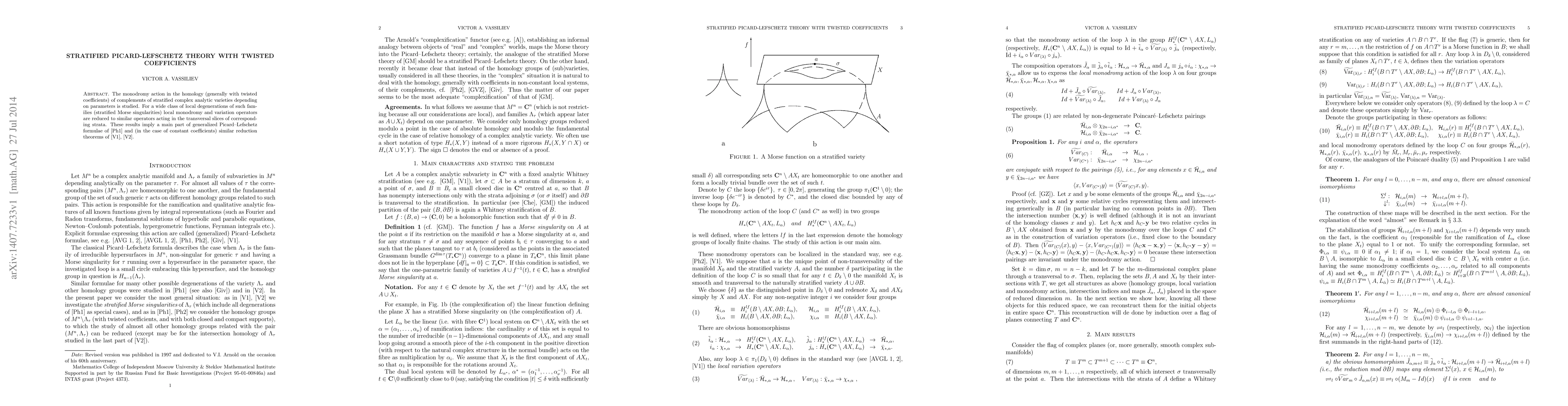 This paper investigates the monodromy action in the homology of complements of stratified complex analytic varieties, focusing on families with twisted coefficients. It establishes connections between local monodromy and variation operators in the context of stratified Morse singularities, leading to generalized Picard-Lefschetz formulae.