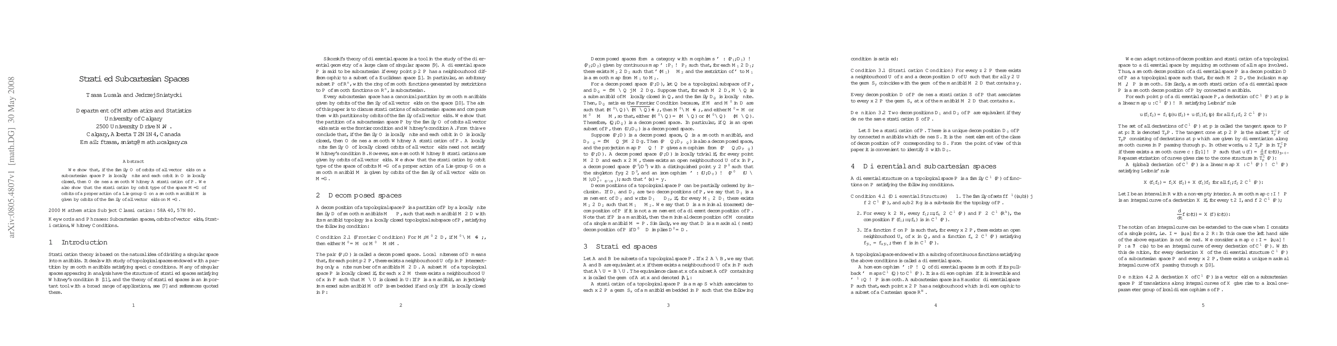 We show that, if the family \cal{O} of orbits of all vector fields on a subcartesian space P is locally finite and each orbit in \cal{O} is locally closed, then \cal{O} defines a smooth Whitney A stratification of P. We also show that the stratification by orbit type of the space M/G of orbits of a proper action of a Lie group G on a smooth manifold M is given by orbits of the family of all vector fields on M/G.