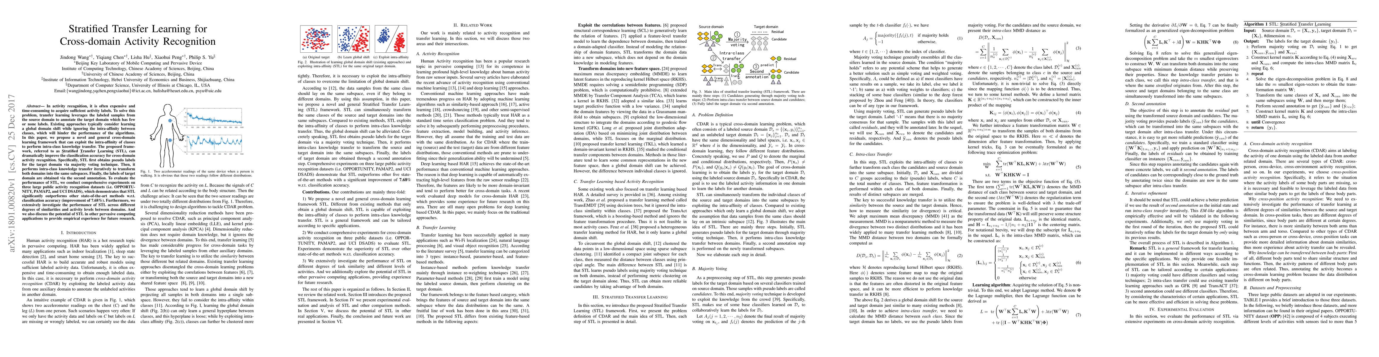 This paper proposes Stratified Transfer Learning (STL) to enhance cross-domain activity recognition by leveraging intra-class knowledge transfer, significantly improving classification accuracy. The method iteratively aligns domains in the same subspace and achieves better results than state-of-the-art methods on three public datasets, demonstrating an improvement of 7.68% in accuracy.