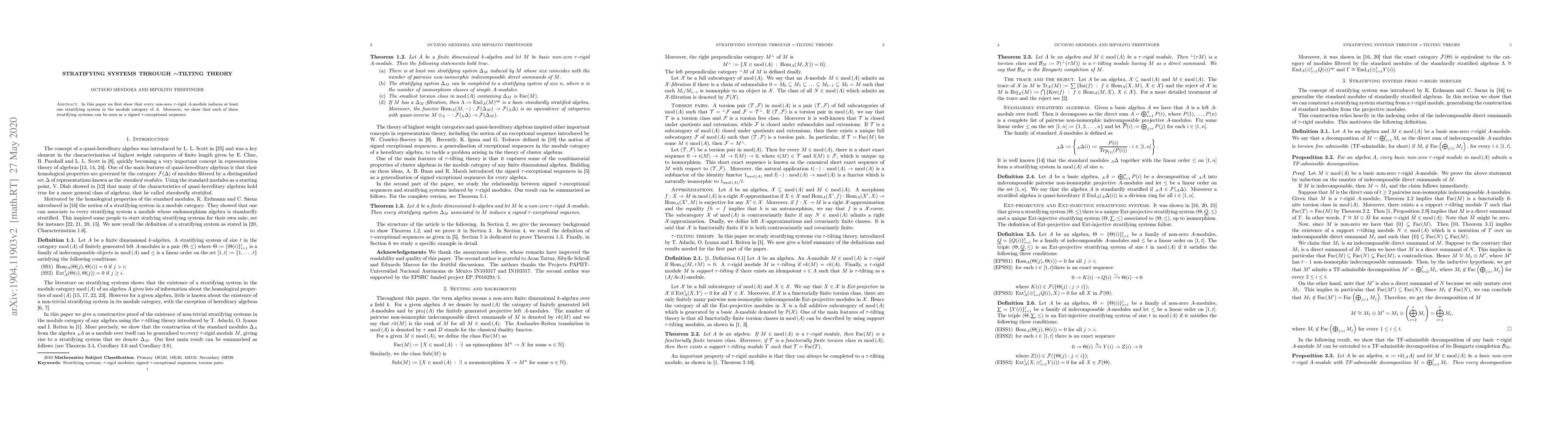 Researchers show that every non-zero $ au$-rigid $A$-module generates at least one stratifying system in its module category, which can also be seen as a signed $ au$-exceptional sequence.