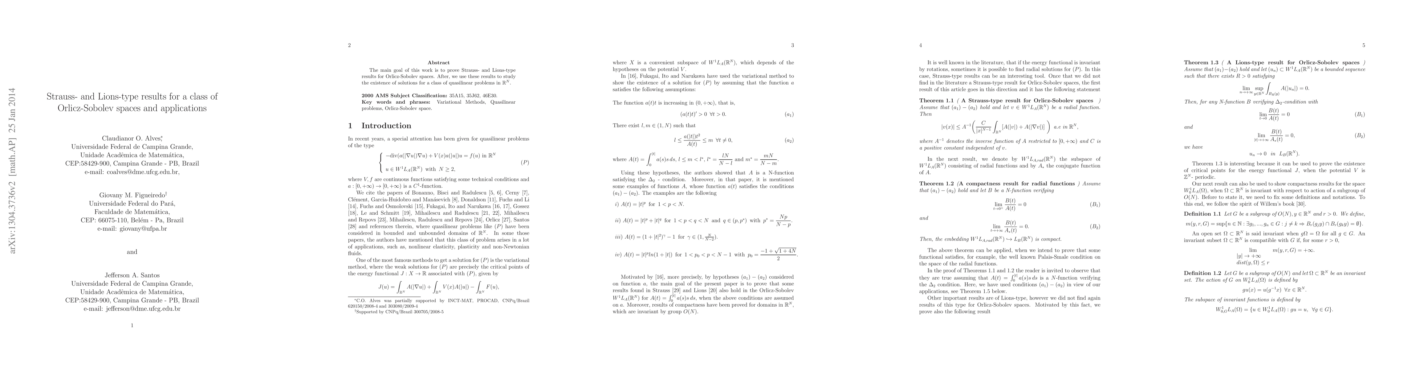 The work extends classical results by Strauss and Lions to Orlicz-Sobolev spaces, providing a more general setting for the study of quasilinear problems and their solutions.