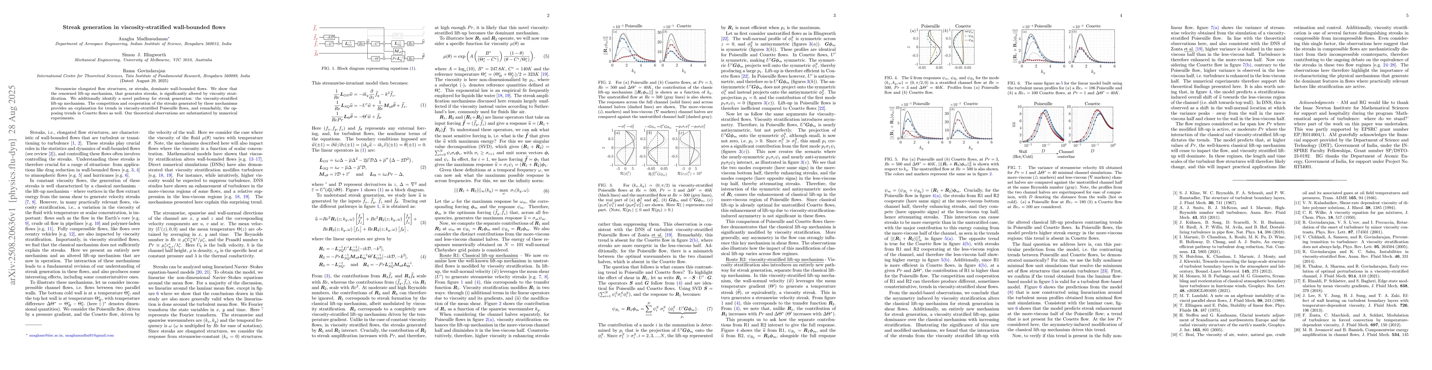 Streamwise elongated flow structures, or streaks, dominate wall-bounded flows. We show that the renowned lift-up mechanism, that generates streaks, is significantly altered by viscosity stratification. We additionally identify a novel pathway for streak generation: the viscosity-stratified lift-up mechanism. The competition and cooperation of the streaks generated by these mechanisms provides an explanation for trends in viscosity-stratified Poiseuille flows, and remarkably, the opposing trends in Couette flows as well. Our theoretical observations are substantiated by numerical experiments.