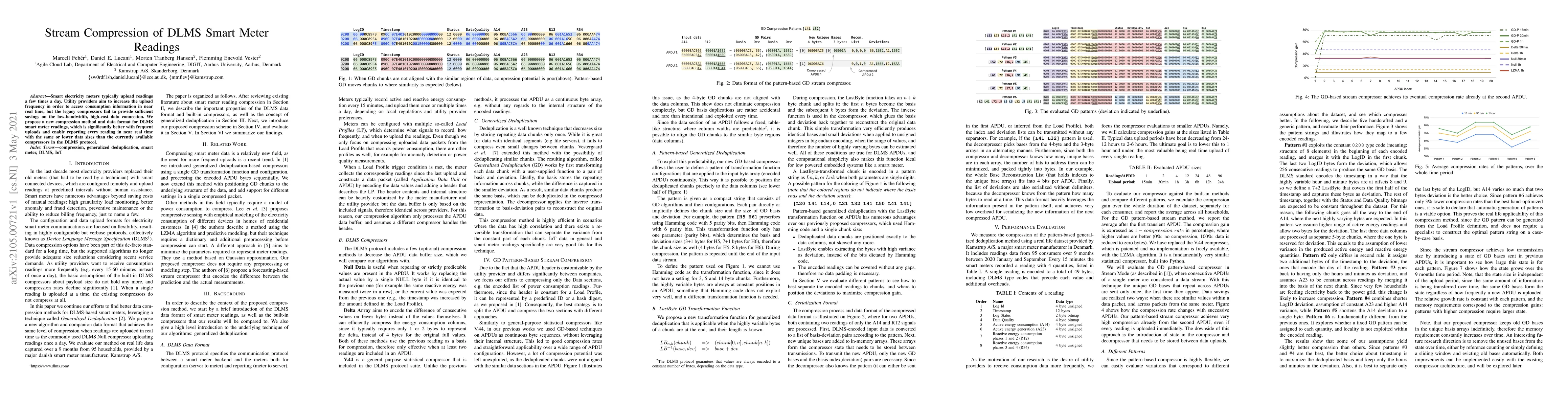 Smart electricity meters typically upload readings a few times a day. Utility providers aim to increase the upload frequency in order to access consumption information in near real time, but the legacy compressors fail to provide sufficient savings on the low-bandwidth, high-cost data connection. We propose a new compression method and data format for DLMS smart meter readings, which is significantly better with frequent uploads and enable reporting every reading in near real time with the same or lower data sizes than the currently available compressors in the DLMS protocol.