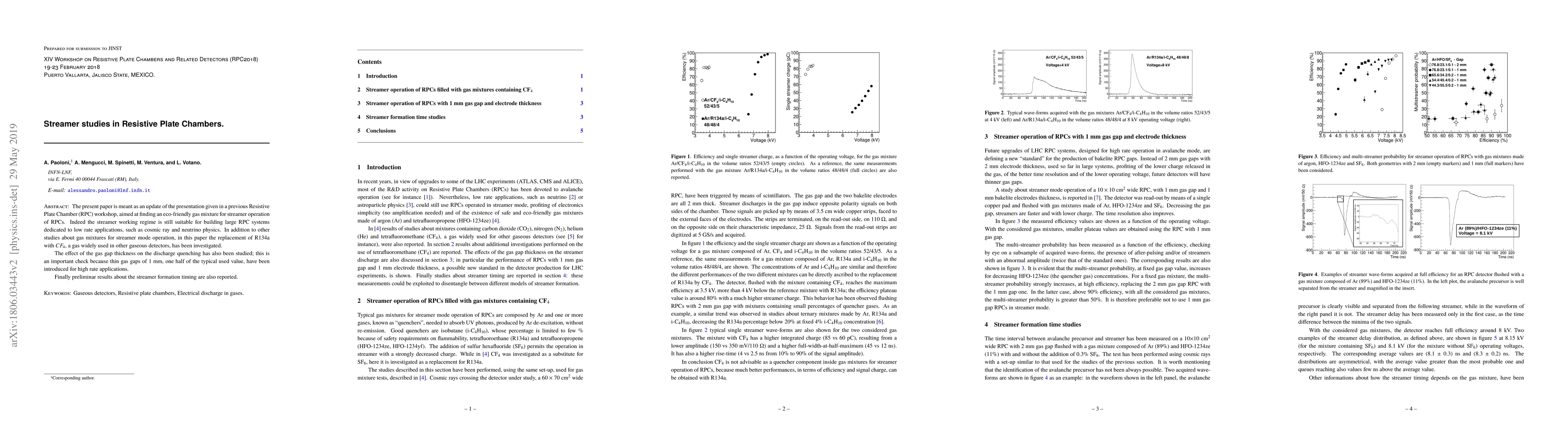 The paper presents an updated analysis of gas mixtures for streamer operation in RPCs, focusing on CF4 as a replacement for R134a and examining the impact of reduced gas gap thickness on discharge quenching.