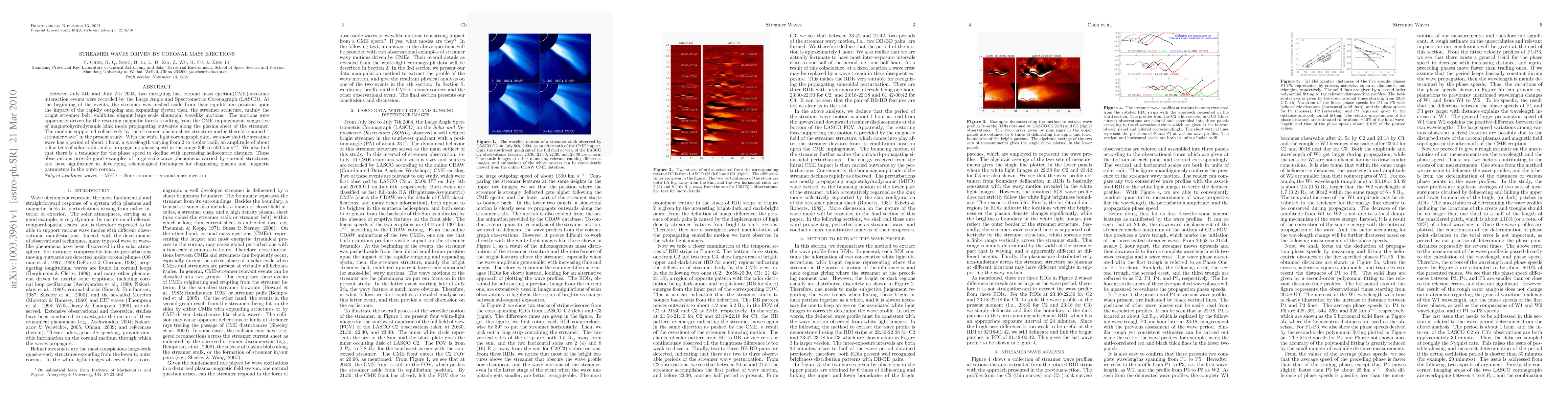 This study investigates streamer waves driven by coronal mass ejections (CMEs) observed between July 5th and July 7th 2004, using LASCO data. The waves exhibit sinusoidal motions with a period of about 1 hour, wavelengths from 2 to 4 solar radii, and phase speeds of 300 to 500 km s$^{-1}$, suggesting magnetohydrodynamic kink modes.