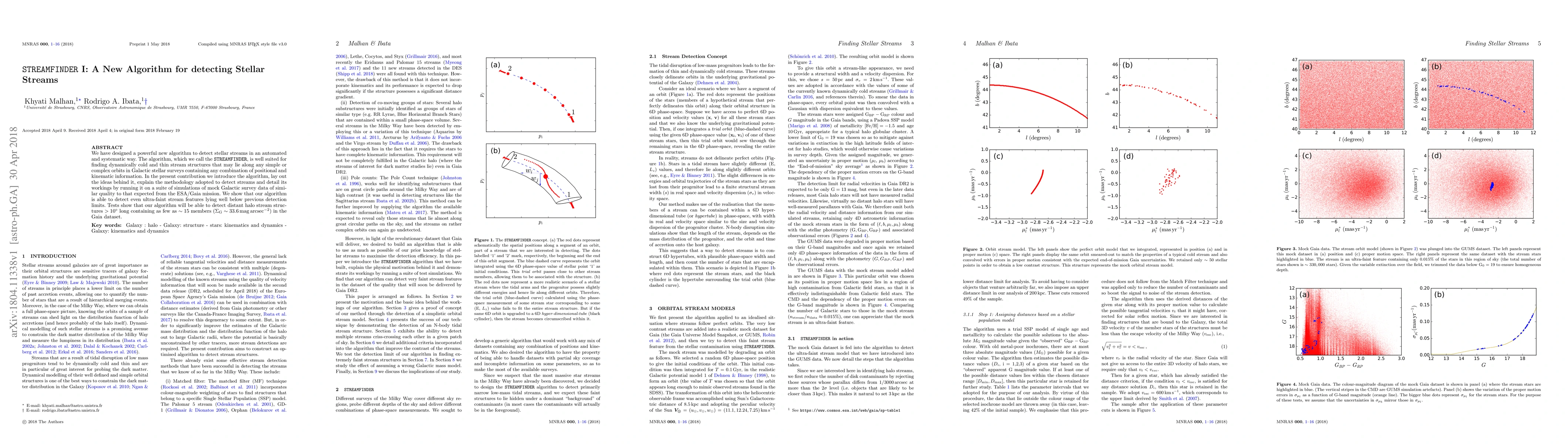 We have designed a powerful new algorithm to detect stellar streams in an automated and systematic way. The algorithm, which we call the STREAMFINDER, is well suited for finding dynamically cold and thin stream structures that may lie along any simple or complex orbits in Galactic stellar surveys containing any combination of positional and kinematic information. In the present contribution we introduce the algorithm, lay out the ideas behind it, explain the methodology adopted to detect streams and detail its workings by running it on a suite of simulations of mock Galactic survey data of similar quality to that expected from the ESA/Gaia mission. We show that our algorithm is able to detect even ultra-faint stream features lying well below previous detection limits. Tests show that our algorithm will be able to detect distant halo stream structures $>10^{\circ}$ long containing as few as $\sim 15$ members ($\Sigma_{\rm G} \sim 33.6\, {\rm mag \, arcsec^{-2}}$) in the Gaia dataset.
