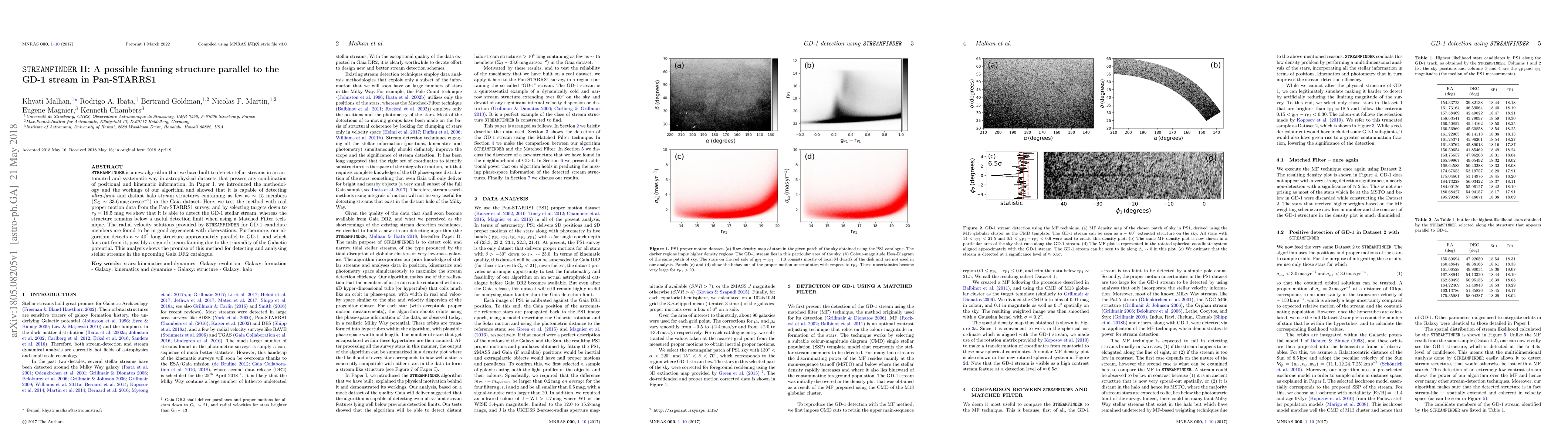A new algorithm called STREAMFINDER II detects a possible fanning structure parallel to the GD-1 stream in Pan-STARRS1 data, outperforming traditional methods like Matched Filter technique.