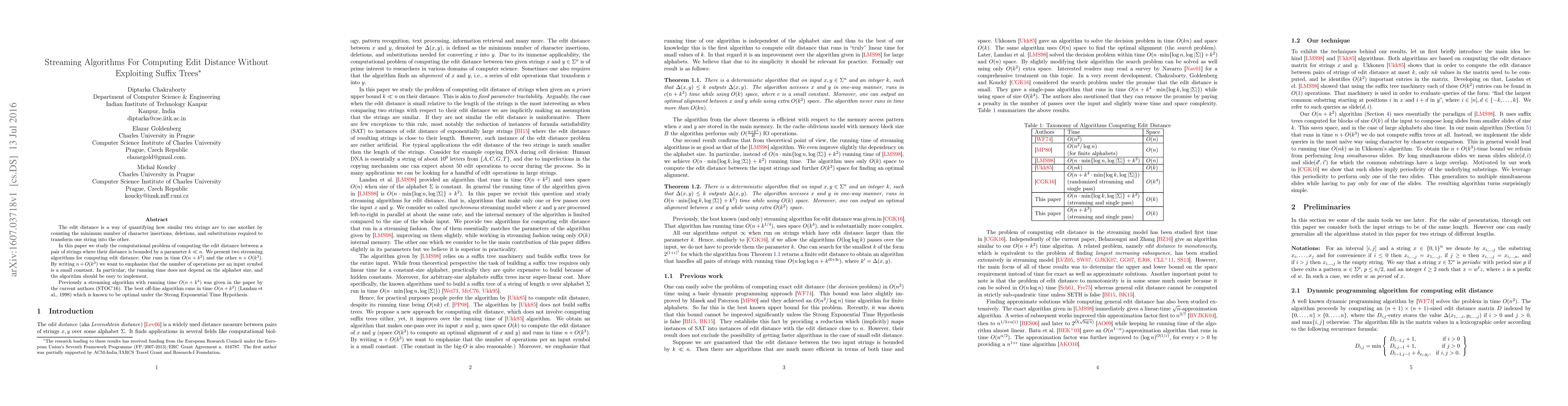The edit distance is a way of quantifying how similar two strings are to one another by counting the minimum number of character insertions, deletions, and substitutions required to transform one string into the other. In this paper we study the computational problem of computing the edit distance between a pair of strings where their distance is bounded by a parameter $k\ll n$. We present two streaming algorithms for computing edit distance: One runs in time $O(n+k^2)$ and the other $n+O(k^3)$. By writing $n+O(k^3)$ we want to emphasize that the number of operations per an input symbol is a small constant. In particular, the running time does not depend on the alphabet size, and the algorithm should be easy to implement. Previously a streaming algorithm with running time $O(n+k^4)$ was given in the paper by the current authors (STOC'16). The best off-line algorithm runs in time $O(n+k^2)$ (Landau et al., 1998) which is known to be optimal under the Strong Exponential Time Hypothesis.