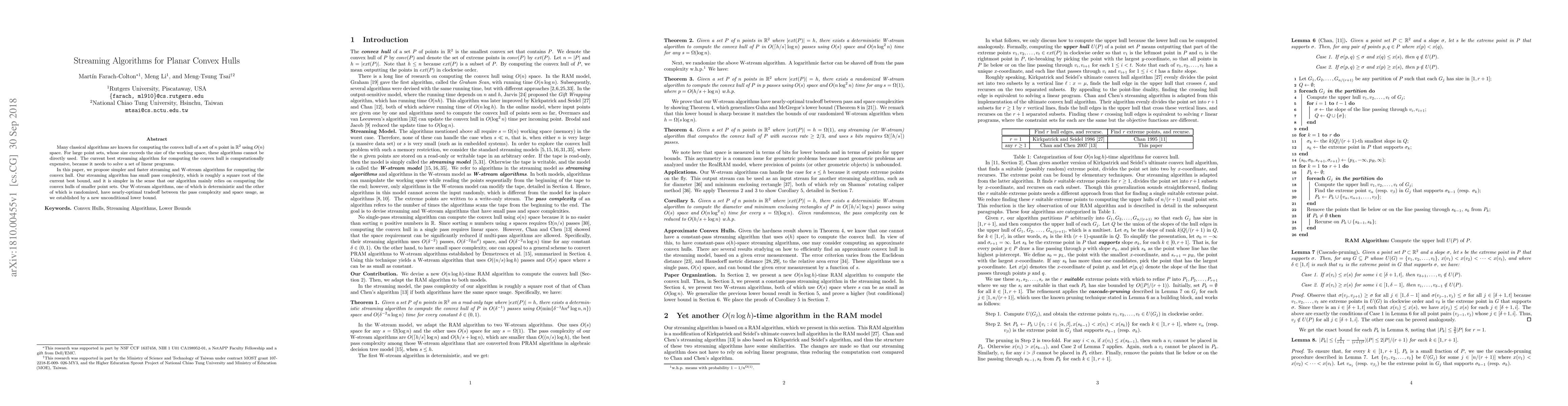 This paper proposes improved streaming algorithms for computing planar convex hulls, achieving lower computational complexity and space efficiency compared to existing methods. The proposed algorithms, including both a simpler streaming algorithm and W-stream variants, offer significant reductions in pass complexity and a near-optimal balance between pass complexity and space usage.