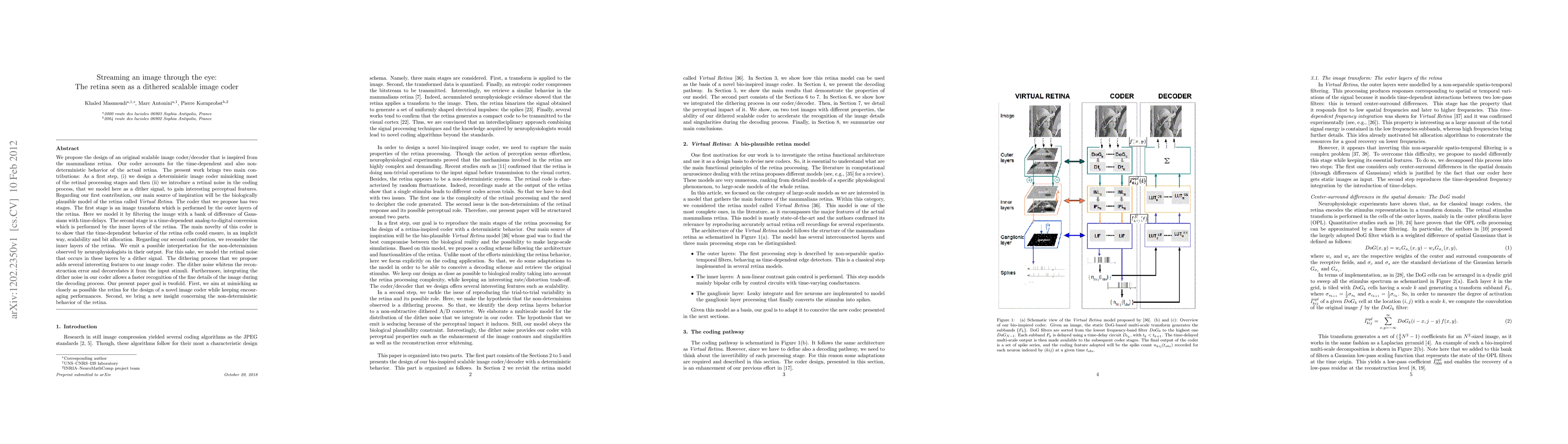 This paper proposes a novel scalable image coder inspired by the mammalian retina, incorporating time-dependent behavior and retinal noise modeled as a dither signal. The coder mimics retinal processing stages and aims to achieve better perceptual features and faster recognition of image details.