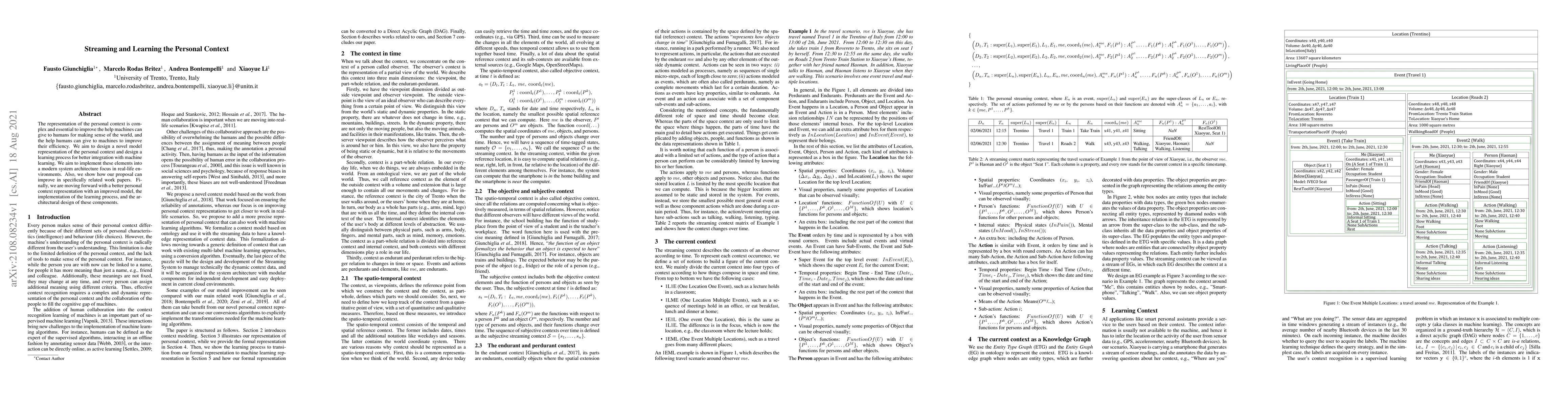 This paper proposes a novel model for representing personal context to enhance human-machine interaction and machine learning efficiency. It introduces a new learning process and system architecture for real-life applications, demonstrating improvements over existing methods.