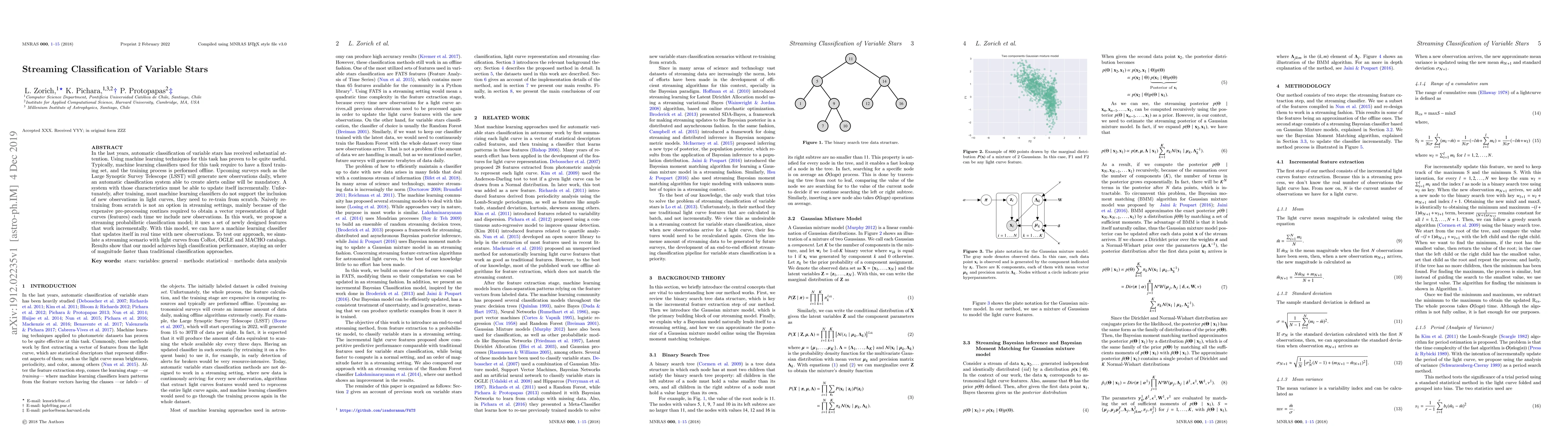 This paper presents a streaming probabilistic classification model for variable stars, utilizing incrementally updated features to allow real-time updates without the need for re-training. The proposed model achieves high classification performance and is significantly faster than traditional offline methods.