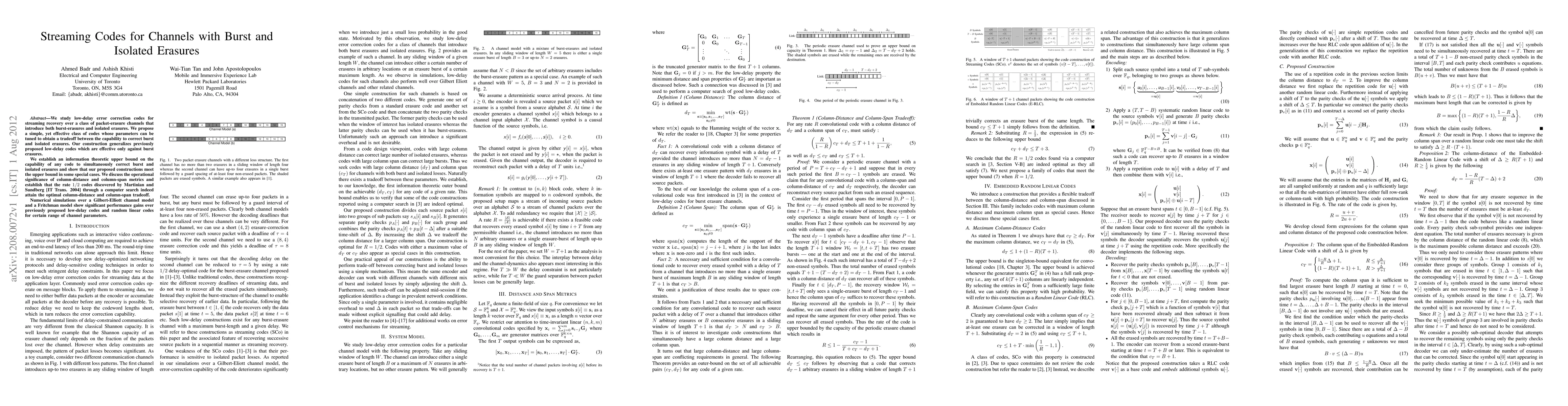 We study low-delay error correction codes for streaming recovery over a class of packet-erasure channels that introduce both burst-erasures and isolated erasures. We propose a simple, yet effective class of codes whose parameters can be tuned to obtain a tradeoff between the capability to correct burst and isolated erasures. Our construction generalizes previously proposed low-delay codes which are effective only against burst erasures. We establish an information theoretic upper bound on the capability of any code to simultaneously correct burst and isolated erasures and show that our proposed constructions meet the upper bound in some special cases. We discuss the operational significance of column-distance and column-span metrics and establish that the rate 1/2 codes discovered by Martinian and Sundberg [IT Trans.\, 2004] through a computer search indeed attain the optimal column-distance and column-span tradeoff. Numerical simulations over a Gilbert-Elliott channel model and a Fritchman model show significant performance gains over previously proposed low-delay codes and random linear codes for certain range of channel parameters.