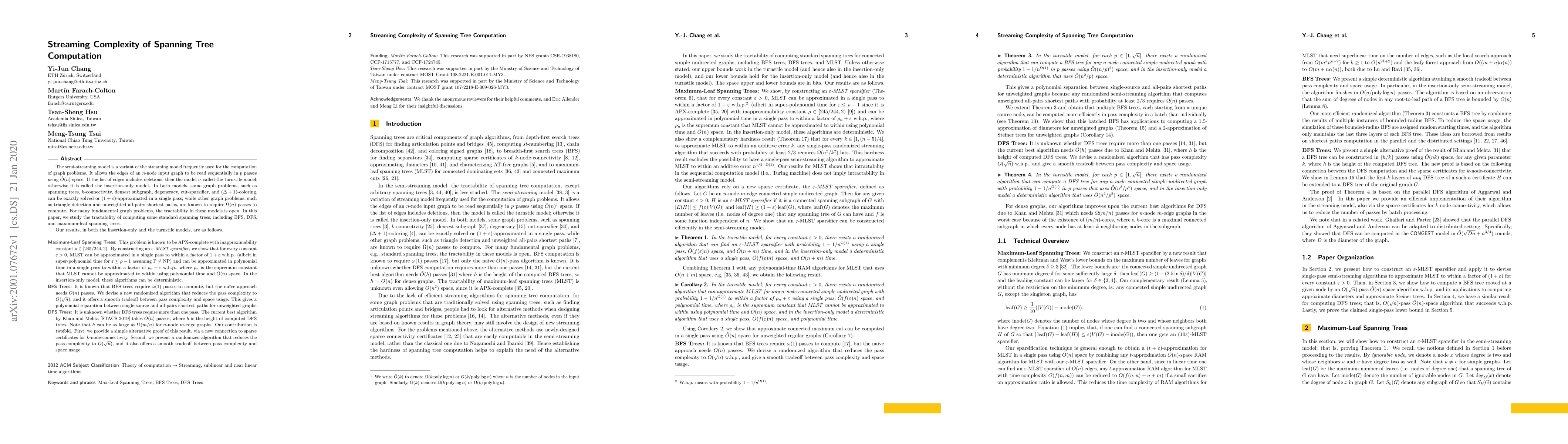 Research paper explores the streaming complexity of computing standard spanning trees, achieving breakthroughs in approximating maximum-leaf spanning trees and improving pass complexities for BFS and DFS trees.