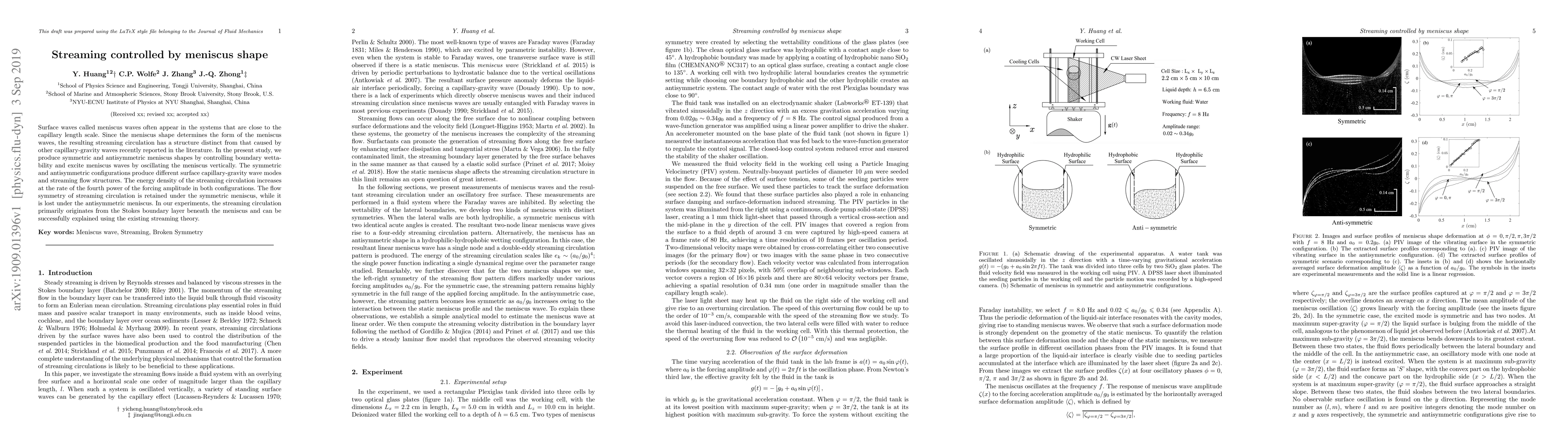 Surface waves called meniscus waves often appear in the systems that are close to the capillary length scale. Since the meniscus shape determines the form of the meniscus waves, the resulting streaming circulation has a structure distinct from that caused by other capillary-gravity waves recently reported in the literature. In the present study, we produce symmetric and antisymmetric meniscus shapes by controlling boundary wettability and excite meniscus waves by oscillating the meniscus vertically. The symmetric and antisymmetric configurations produce different surface capillary-gravity wave modes and streaming flow structures. The energy density of the streaming circulation increases at the rate of the fourth power of the forcing amplitude in both configurations. The flow symmetry of streaming circulation is retained under the symmetric meniscus, while it is lost under the antisymmetric meniscus. In our experiments, the streaming circulation primarily originates from the Stokes boundary layer beneath the meniscus and can be successfully explained using the existing streaming theory.