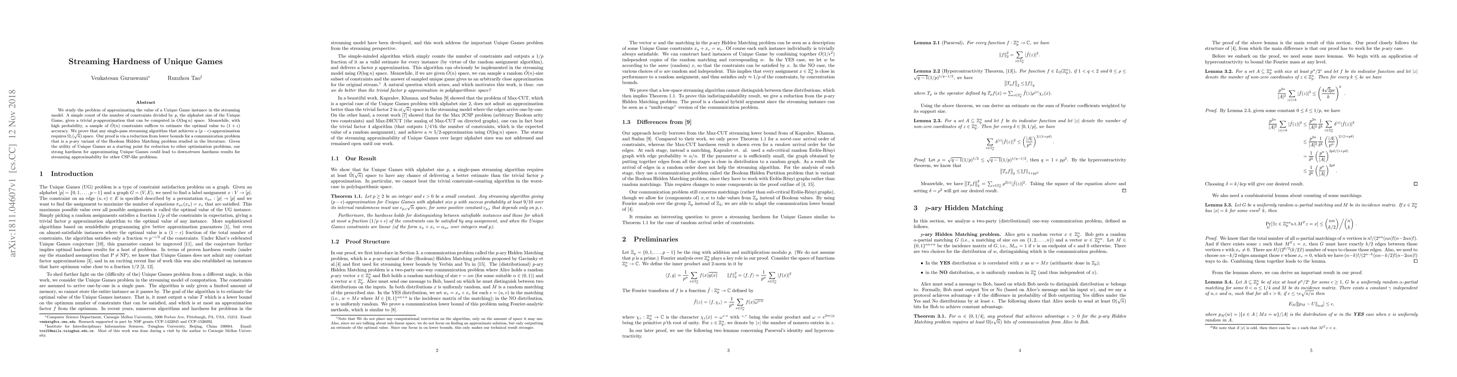 This paper investigates the streaming approximation of Unique Game values, proving that achieving a $(p-\epsilon)$-approximation requires $\Omega_\epsilon(\sqrt{n})$ space, establishing strong streaming hardness for Unique Games and potentially extending to other constraint satisfaction problems.