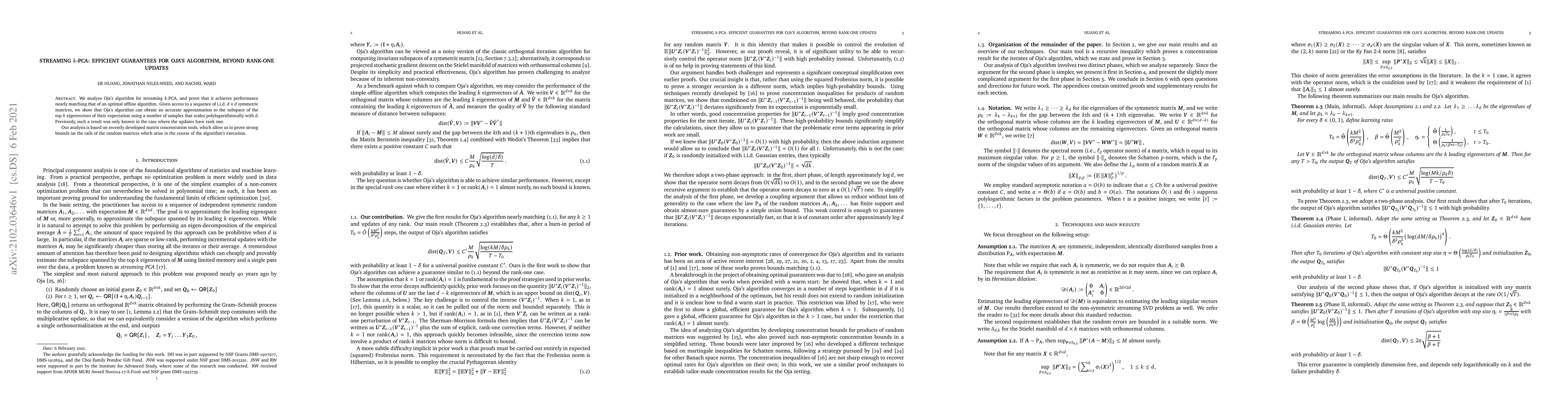 This paper analyzes Oja's algorithm for streaming $k$-PCA, demonstrating its efficiency beyond rank-one updates. It proves that the algorithm can accurately approximate the top $k$ eigenvectors' subspace using a polylogarithmic number of samples, leveraging advanced matrix concentration techniques.