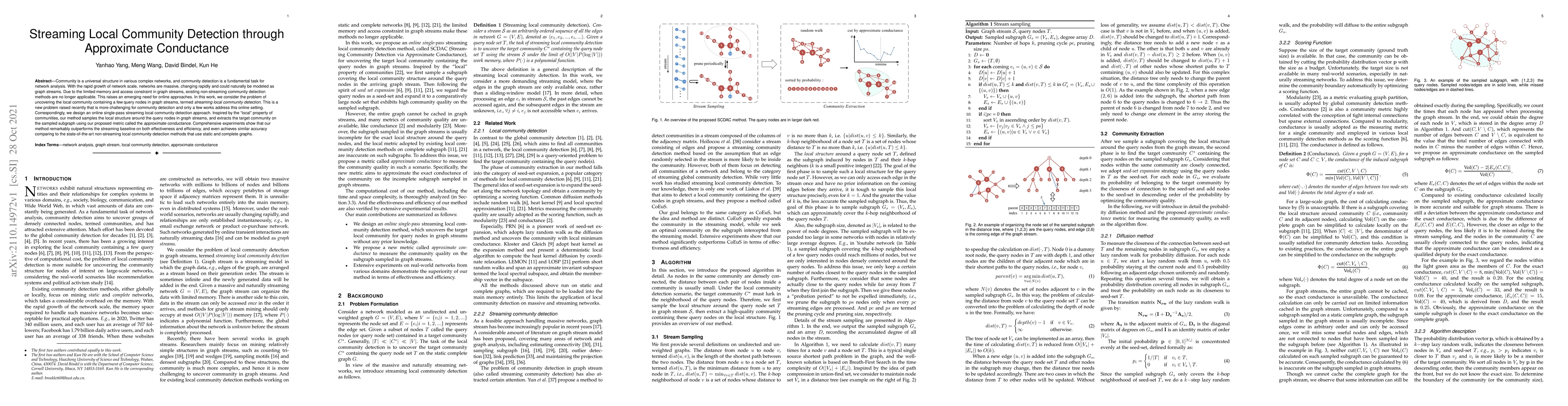 This paper proposes an online single-pass method for streaming local community detection in large-scale dynamic graphs. It introduces an approximate conductance metric to sample local subgraphs and identify communities around query nodes, outperforming baseline methods in both efficiency and effectiveness.