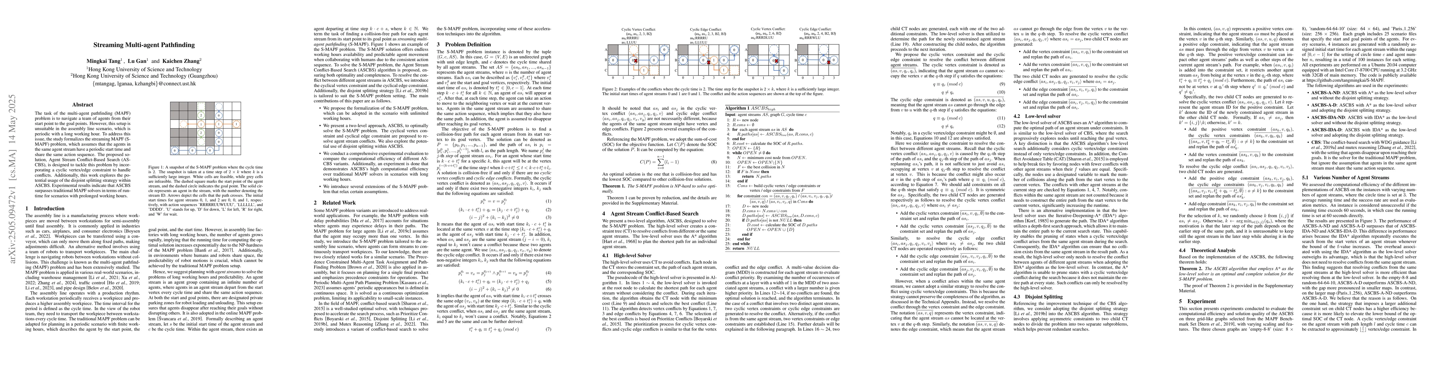 The research formalizes the streaming MAPF (S-MAPF) problem and proposes Agent Stream Conflict-Based Search (ASCBS) to handle conflicts with cyclic vertex/edge constraints, exploring disjoint splitting strategy within ASCBS.
