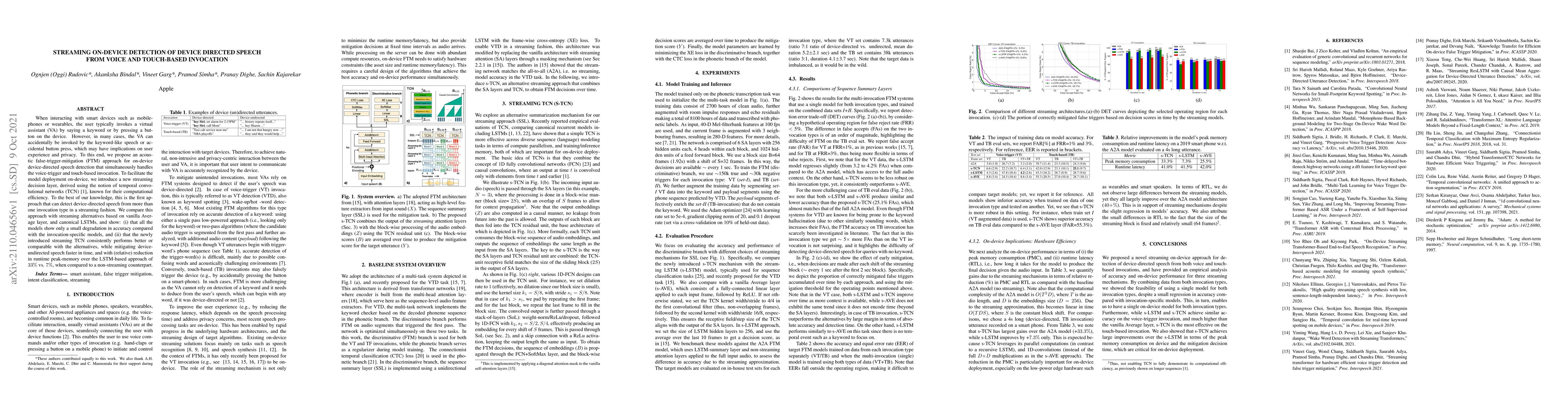 This paper proposes an on-device detection method for distinguishing between intended and accidental invocations of virtual assistants using both voice and touch-based triggers, employing a streaming decision layer based on temporal convolutional networks (TCN) for efficient real-time processing. The approach shows comparable accuracy with reduced computational and memory overhead compared to LSTM-based alternatives.