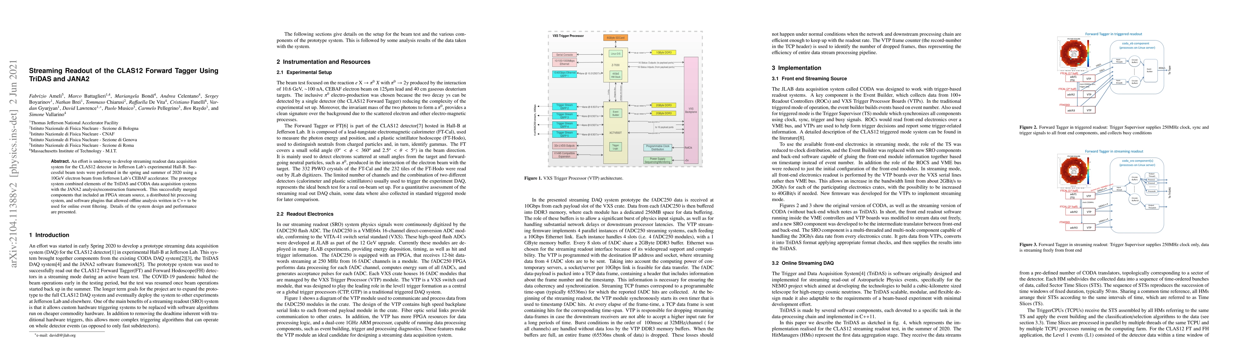 Researchers successfully tested a streaming data acquisition system for CLAS12 detector, combining elements of TriDAS and CODA with JANA2 framework, enabling real-time event filtering and analysis.