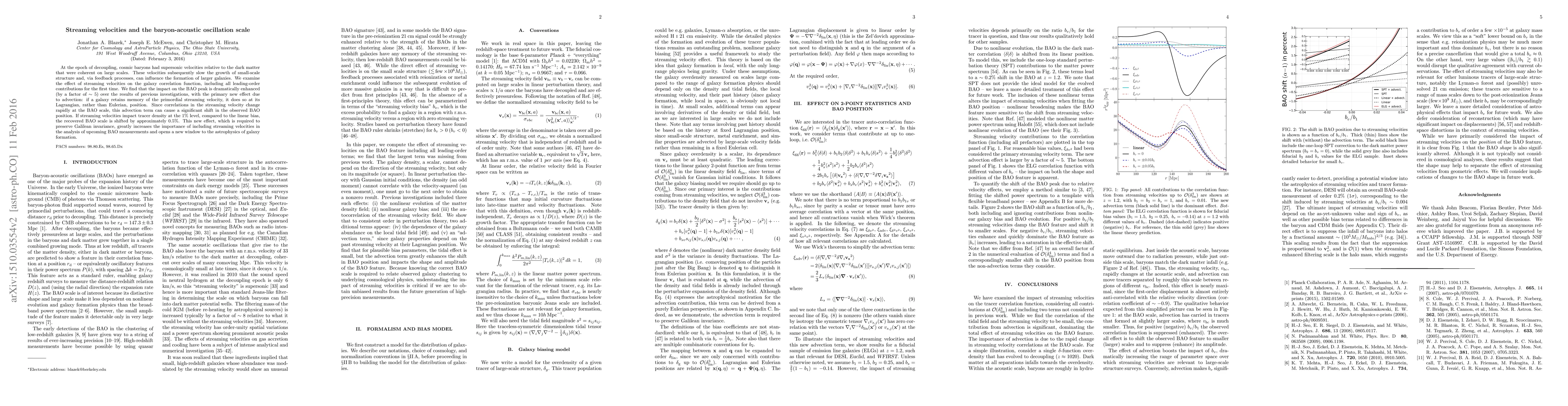 At the epoch of decoupling, cosmic baryons had supersonic velocities relative to the dark matter that were coherent on large scales. These velocities subsequently slow the growth of small-scale structure and, via feedback processes, can influence the formation of larger galaxies. We examine the effect of streaming velocities on the galaxy correlation function, including all leading-order contributions for the first time. We find that the impact on the BAO peak is dramatically enhanced (by a factor of ~5) over the results of previous investigations, with the primary new effect due to advection: if a galaxy retains memory of the primordial streaming velocity, it does so at its Lagrangian, rather than Eulerian, position. Since correlations in the streaming velocity change rapidly at the BAO scale, this advection term can cause a significant shift in the observed BAO position. If streaming velocities impact tracer density at the 1% level, compared to the linear bias, the recovered BAO scale is shifted by approximately 0.5%. This new effect, which is required to preserve Galilean invariance, greatly increases the importance of including streaming velocities in the analysis of upcoming BAO measurements and opens a new window to the astrophysics of galaxy formation.