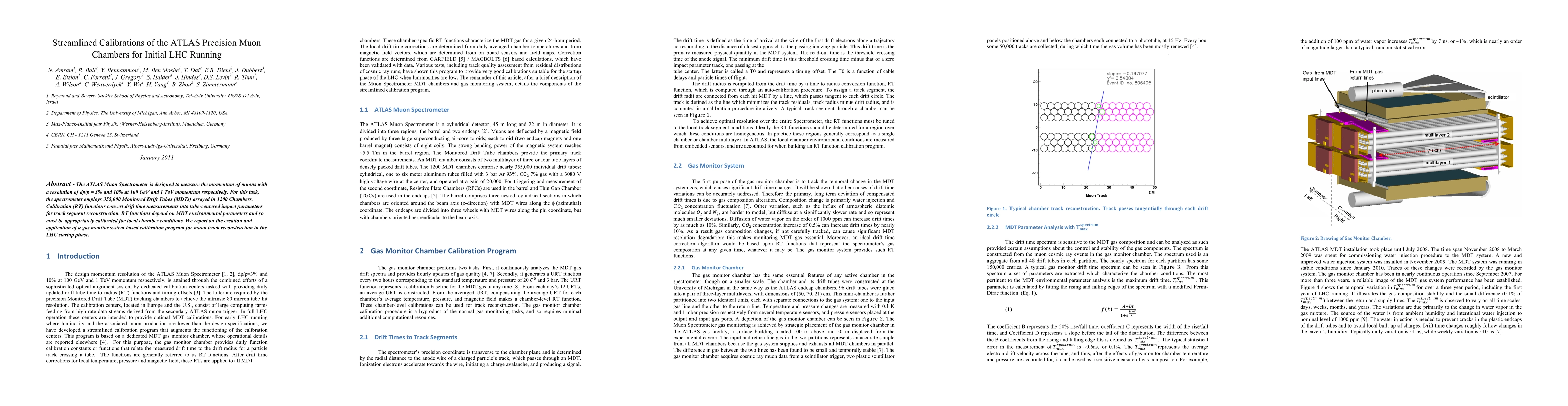 The ATLAS Muon Spectrometer is designed to measure the momentum of muons with a resolution of dp/p = 3% and 10% at 100 GeV and 1 TeV momentum respectively. For this task, the spectrometer employs 355,000 Monitored Drift Tubes (MDTs) arrayed in 1200 Chambers. Calibration (RT) functions convert drift time measurements into tube-centered impact parameters for track segment reconstruction. RT functions depend on MDT environmental parameters and so must be appropriately calibrated for local chamber conditions. We report on the creation and application of a gas monitor system based calibration program for muon track reconstruction in the LHC startup phase.