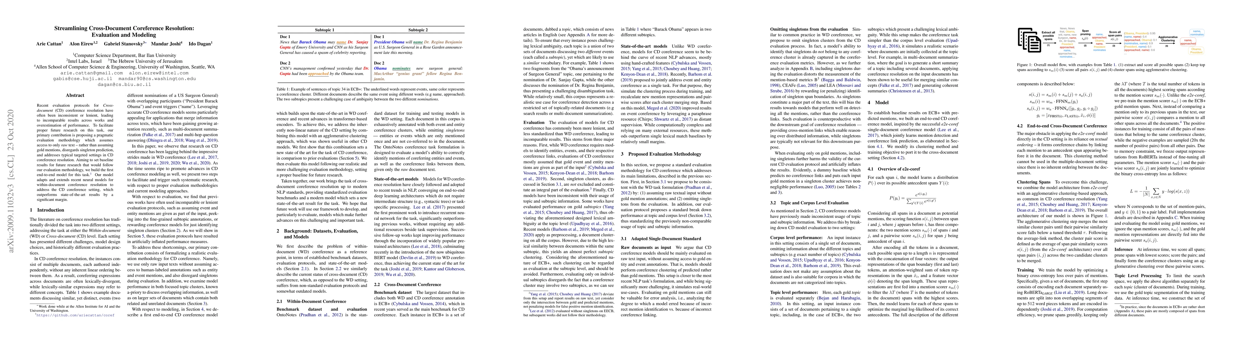This paper proposes a new evaluation methodology for cross-document coreference resolution, aiming to provide a fair comparison across studies. It also introduces an end-to-end neural model that significantly outperforms existing methods, setting a new baseline for future research.
