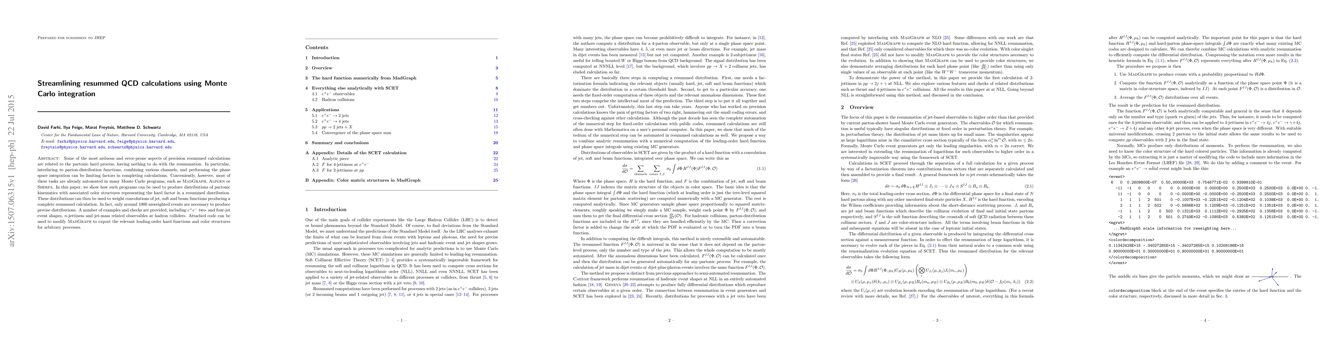 Some of the most arduous and error-prone aspects of precision resummed calculations are related to the partonic hard process, having nothing to do with the resummation. In particular, interfacing to parton-distribution functions, combining various channels, and performing the phase space integration can be limiting factors in completing calculations. Conveniently, however, most of these tasks are already automated in many Monte Carlo programs, such as MadGraph, Alpgen or Sherpa. In this paper, we show how such programs can be used to produce distributions of partonic kinematics with associated color structures representing the hard factor in a resummed distribution. These distributions can then be used to weight convolutions of jet, soft and beam functions producing a complete resummed calculation. In fact, only around 1000 unweighted events are necessary to produce precise distributions. A number of examples and checks are provided, including $e^+e^-$ two- and four-jet event shapes, $n$-jettiness and jet-mass related observables at hadron colliders. Attached code can be used to modify MadGraph to export the relevant leading-order hard functions and color structures for arbitrary processes.