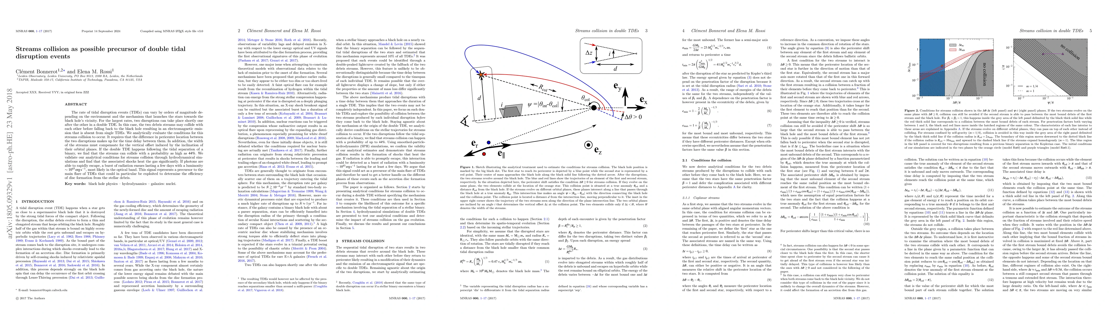 The research paper analyzes conditions for streams collision in double tidal disruption events, finding that collisions occur with a 44% probability, leading to bursts of radiation lasting several days.
