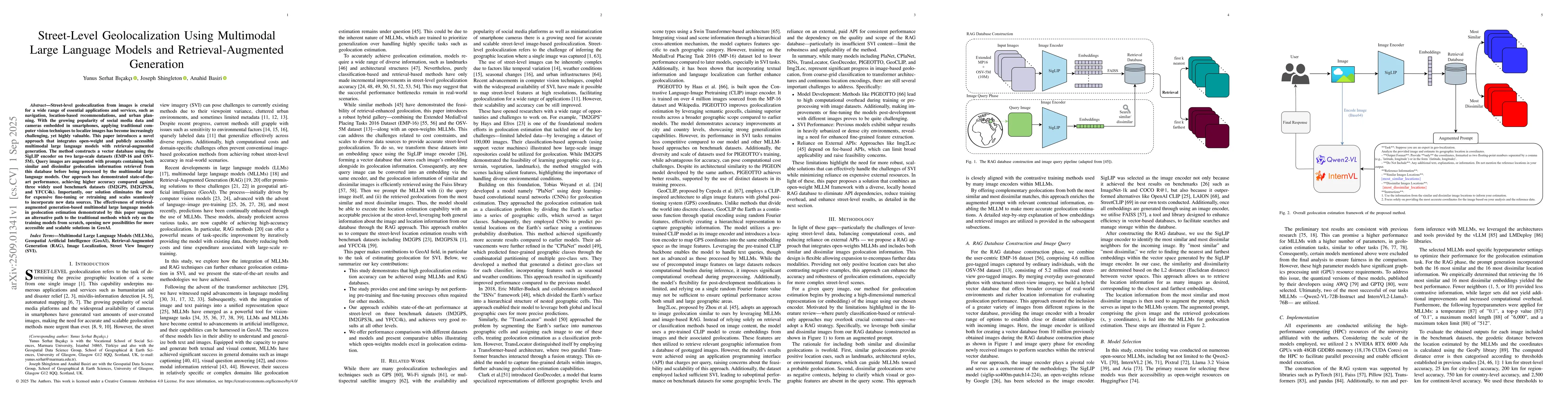 Street-level geolocalization from images is crucial for a wide range of essential applications and services, such as navigation, location-based recommendations, and urban planning. With the growing popularity of social media data and cameras embedded in smartphones, applying traditional computer vision techniques to localize images has become increasingly challenging, yet highly valuable. This paper introduces a novel approach that integrates open-weight and publicly accessible multimodal large language models with retrieval-augmented generation. The method constructs a vector database using the SigLIP encoder on two large-scale datasets (EMP-16 and OSV-5M). Query images are augmented with prompts containing both similar and dissimilar geolocation information retrieved from this database before being processed by the multimodal large language models. Our approach has demonstrated state-of-the-art performance, achieving higher accuracy compared against three widely used benchmark datasets (IM2GPS, IM2GPS3k, and YFCC4k). Importantly, our solution eliminates the need for expensive fine-tuning or retraining and scales seamlessly to incorporate new data sources. The effectiveness of retrieval-augmented generation-based multimodal large language models in geolocation estimation demonstrated by this paper suggests an alternative path to the traditional methods which rely on the training models from scratch, opening new possibilities for more accessible and scalable solutions in GeoAI.