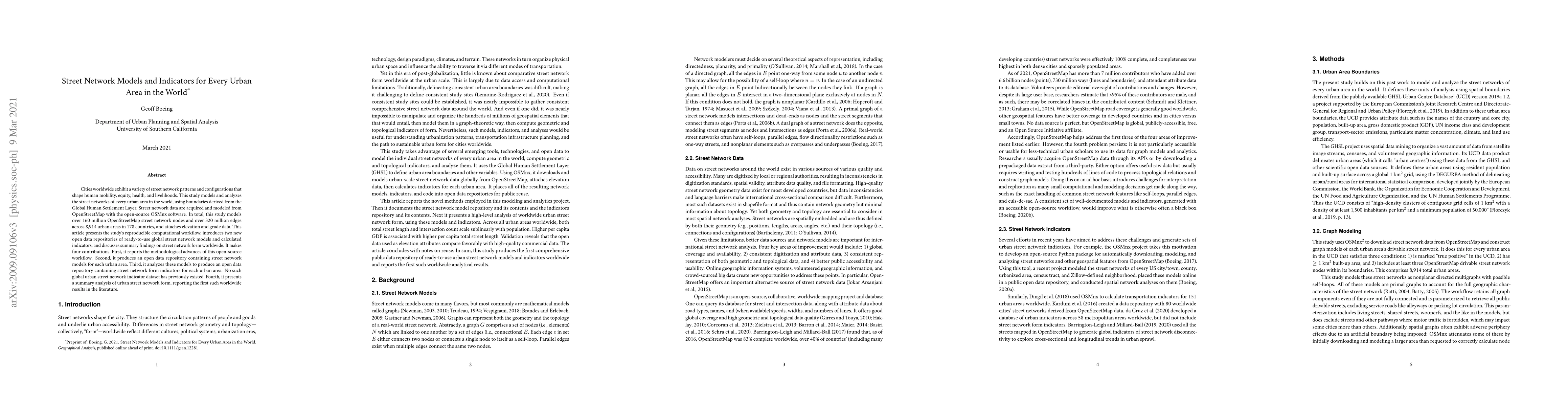 This study models and analyzes street networks for every urban area globally, using OpenStreetMap data and OSMnx software. It introduces two new open data repositories with global street network models and form indicators, and presents the first worldwide summary of urban street network characteristics.