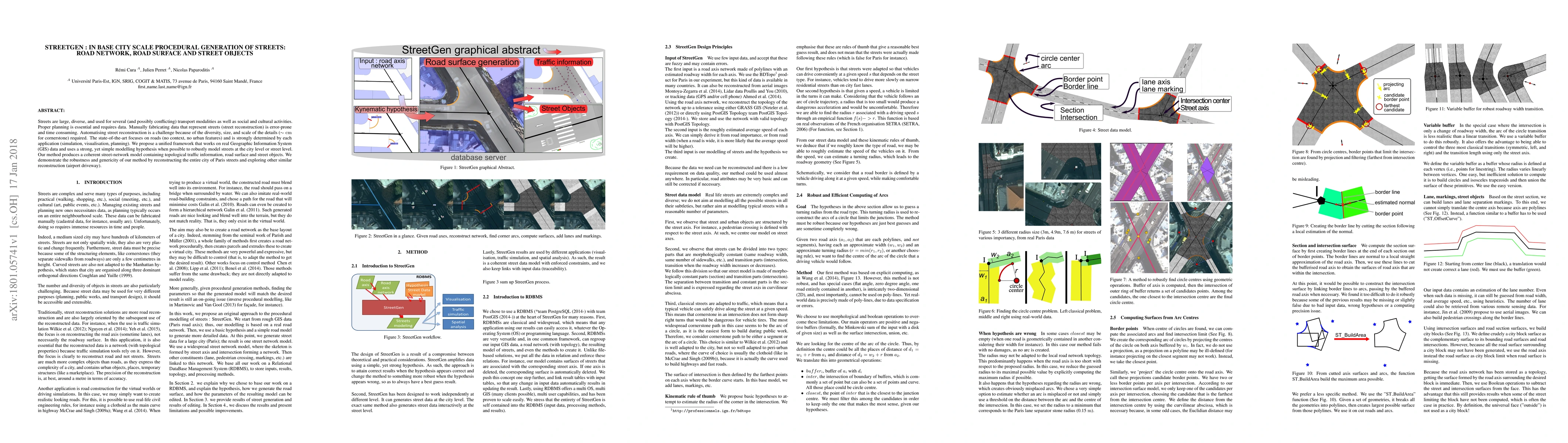 Researchers developed StreetGen, a unified framework for generating realistic street networks at city scale, using real GIS data and simple modeling hypotheses. The method produces coherent models with topological traffic information, road surfaces, and objects, demonstrating its robustness and genericity in reconstructing cities like Paris.