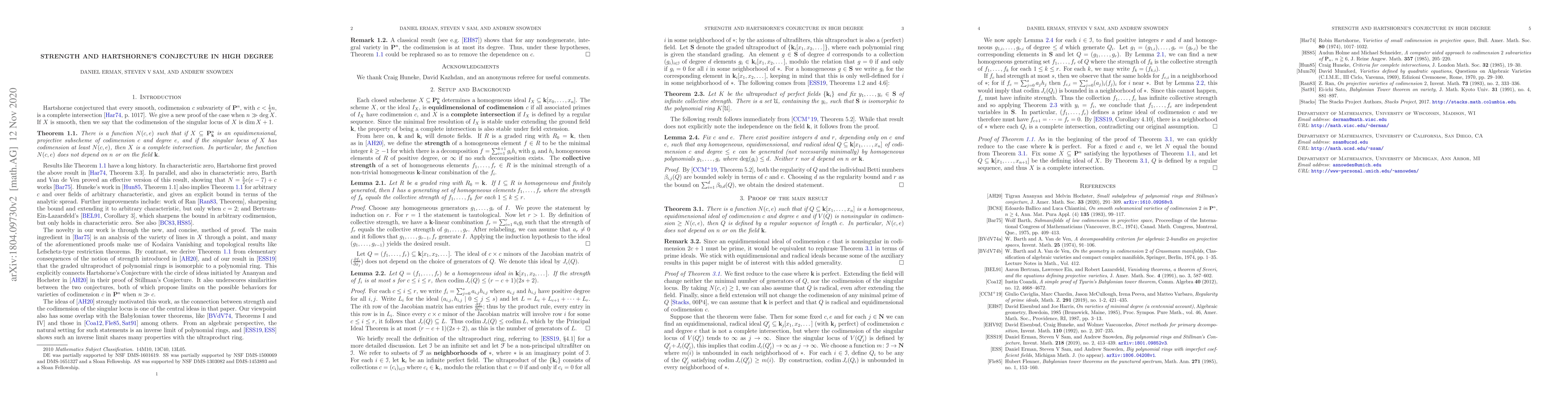 This paper proves Hartshorne's Conjecture for smooth subvarieties in high-dimensional projective spaces when the dimension of the subvariety is much smaller than the dimension of the ambient space. The proof is field independent and utilizes novel methods connected to ideas from Ananyan and Hochster's work on Stillman's Conjecture.