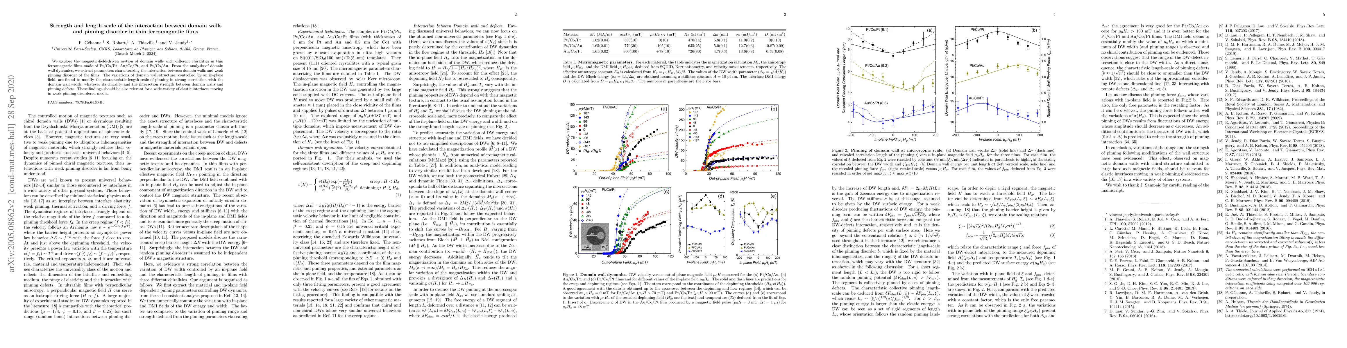 This study investigates how domain wall motion in thin ferromagnetic films is influenced by magnetic fields and pinning disorder, revealing a strong correlation between domain wall width and the characteristic length-scale of pinning, regardless of chirality or interaction strength. The findings have broader implications for the dynamics of elastic interfaces in disordered media.