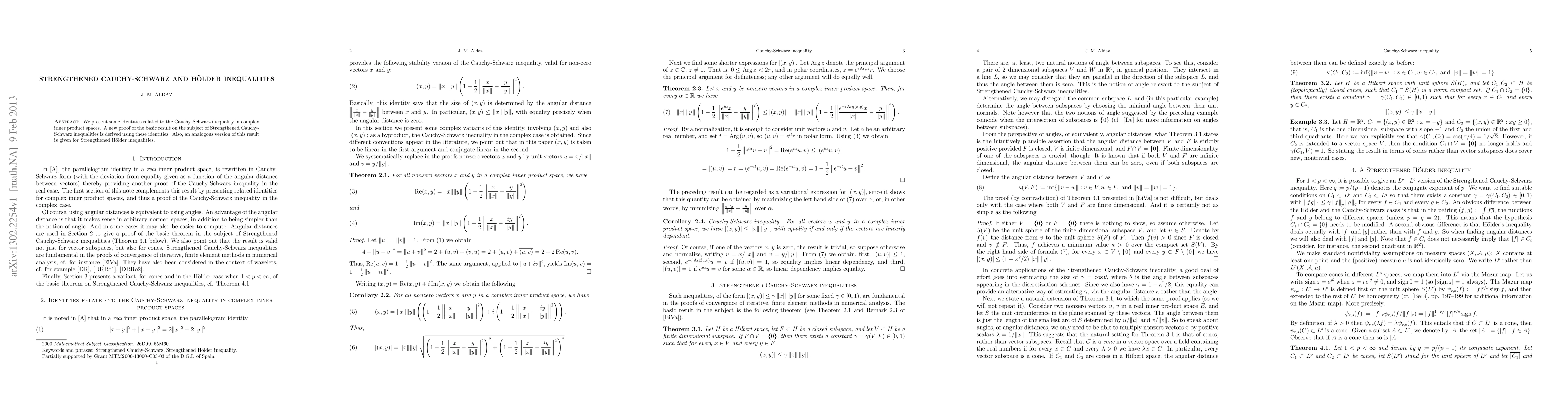 We present some identities related to the Cauchy-Schwarz inequality in complex inner product spaces. A new proof of the basic result on the subject of Strengthened Cauchy-Schwarz inequalities is derived using these identities. Also, an analogous version of this result is given for Strengthened H\"older inequalities.