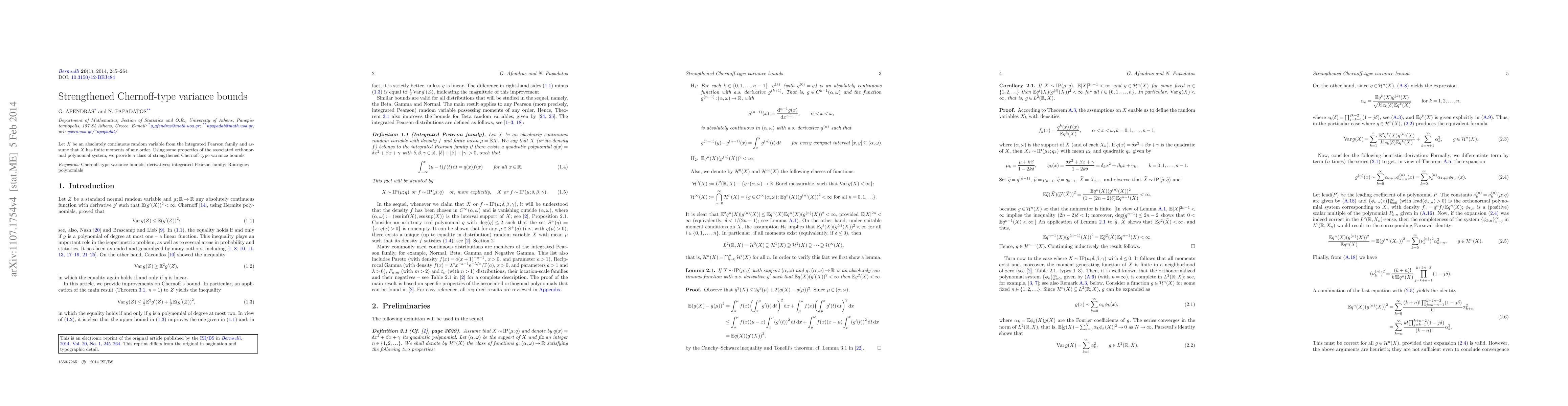 Let $X$ be an absolutely continuous random variable from the integrated Pearson family and assume that $X$ has finite moments of any order. Using some properties of the associated orthonormal polynomial system, we provide a class of strengthened Chernoff-type variance bounds.