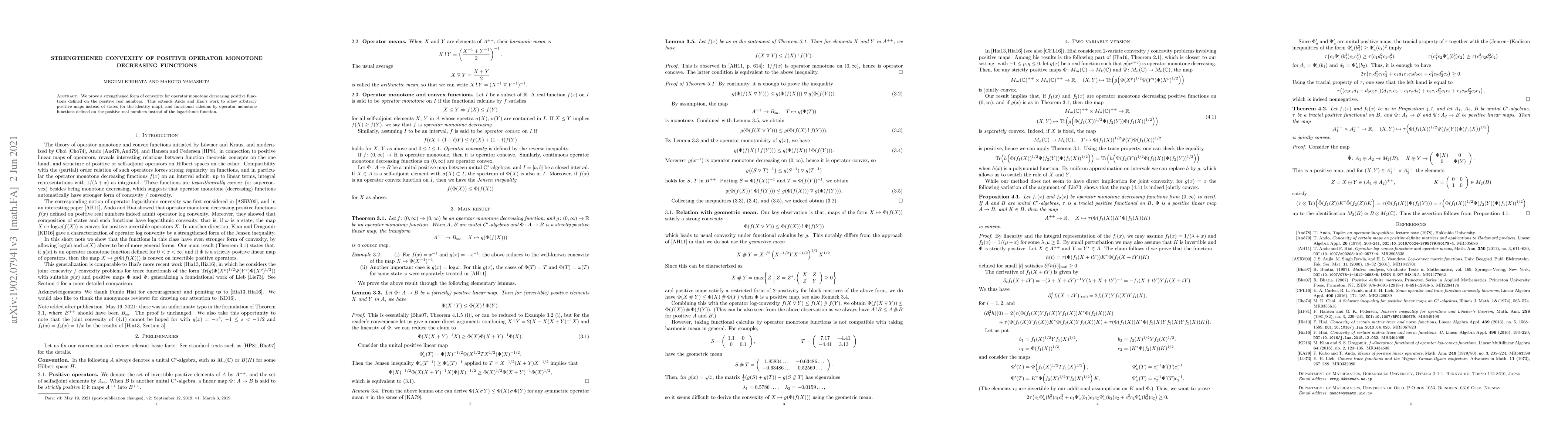 This paper proves a strengthened form of convexity for operator monotone decreasing positive functions defined on the positive real numbers, extending previous work to include arbitrary positive maps and functional calculus.